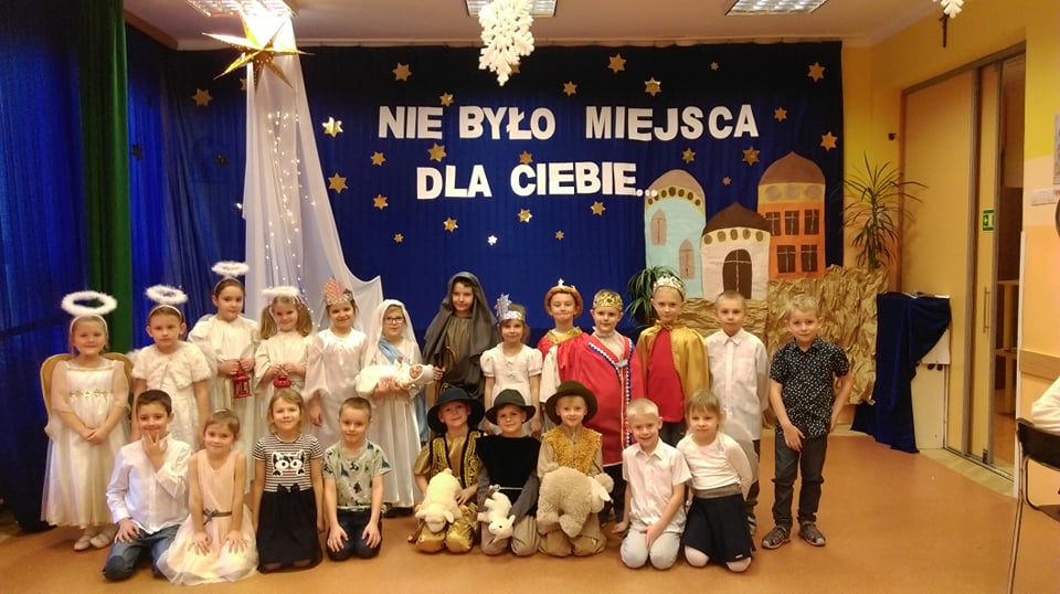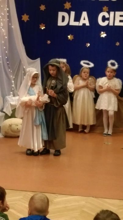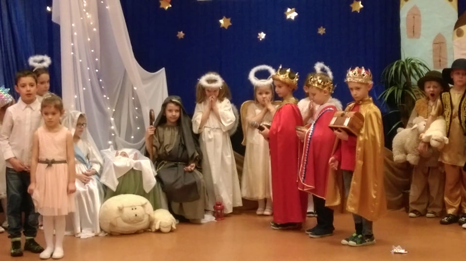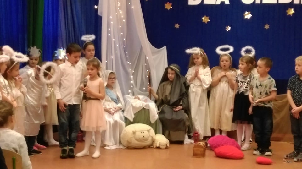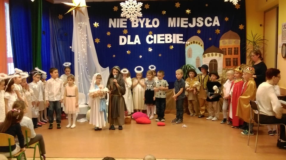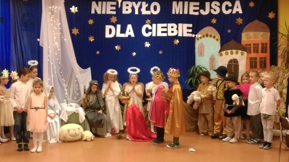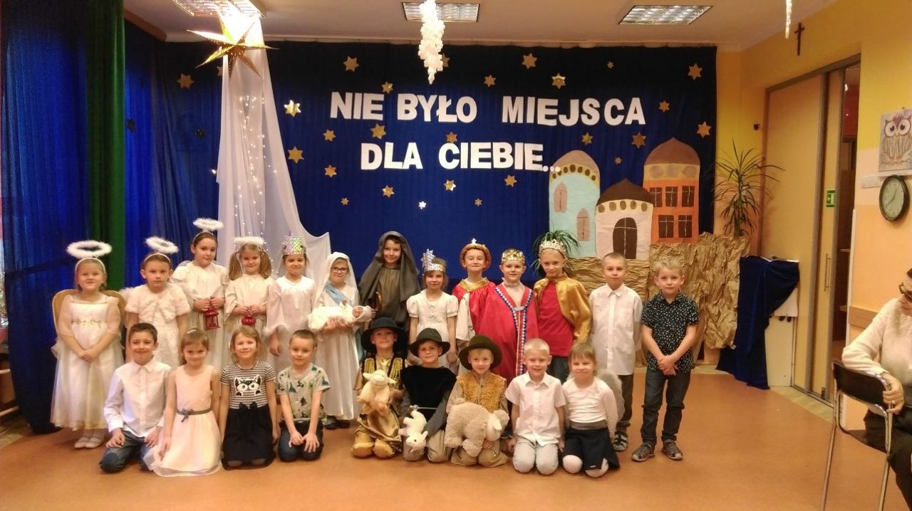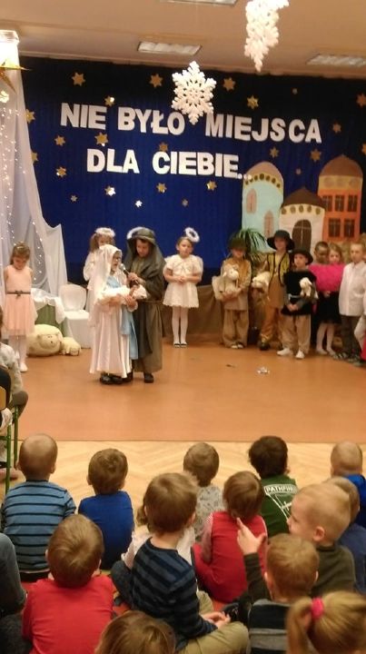 Dzieci z grupy Mądre Sówki i Kłapouszki zaprezentowały przedstawienie Jasełkowe wszystkim przedszkolakom i pracownikom przedszkola. Mali artyści z dużym przejęciem i zaangażowaniem wiernie odtwarzali swoje role, prezentowali umiejętności recytatorskie i wokalne.