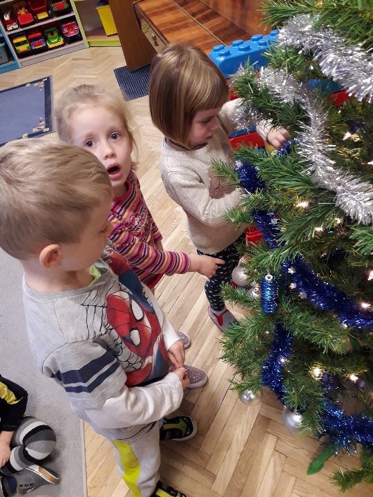 Pani Ela wprowadziła dzieci w świąteczny nastrój czytając dzieciom bajkę o leniwym i niegrzecznym aniołku, który został oddelegowany na ziemię aby pomagać Św. Mikołajowi w roznoszeniu paczek.