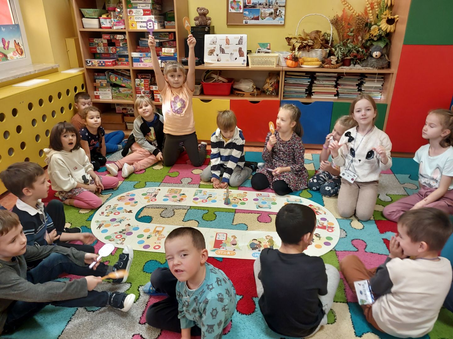 Dzieci z grupy Kłapouszków miały 31.10.23r. zajęcia z panią psycholog. Podczas gry
