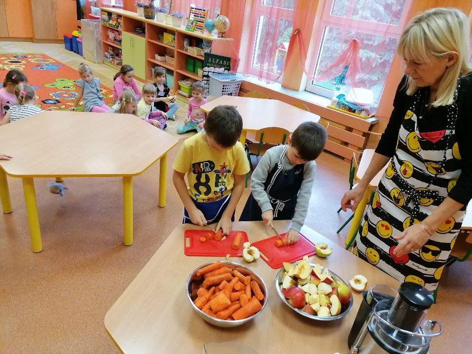 Z myślą o witaminkach chłopcy postanowili zrobić sok z marchewki i jabłek.