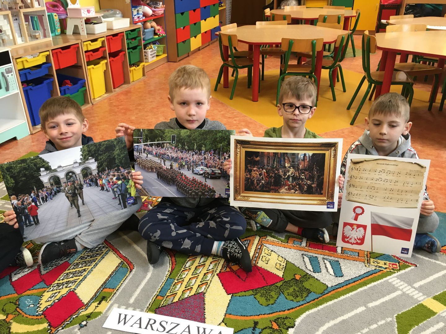 W minionym tygodniu rozmawialiśmy o świetach majowych. Dzieci wzięły udział w licznych zabawach i zadaniach kształtujących postawy patriotyczne.- były krzyżówki, praca plastyczna, zdjęcia zabytków Warszawy oraz rozmowa o Święcie Pracy- 1 Maja. Przypadające 2 maja - Święto Flagi oraz o obchodach 231. rocznicy uchwalenia Konstytucji 3 maja.