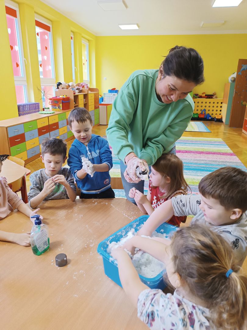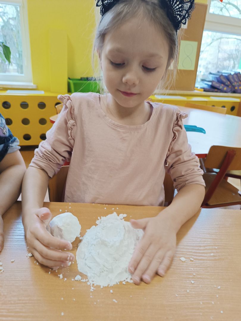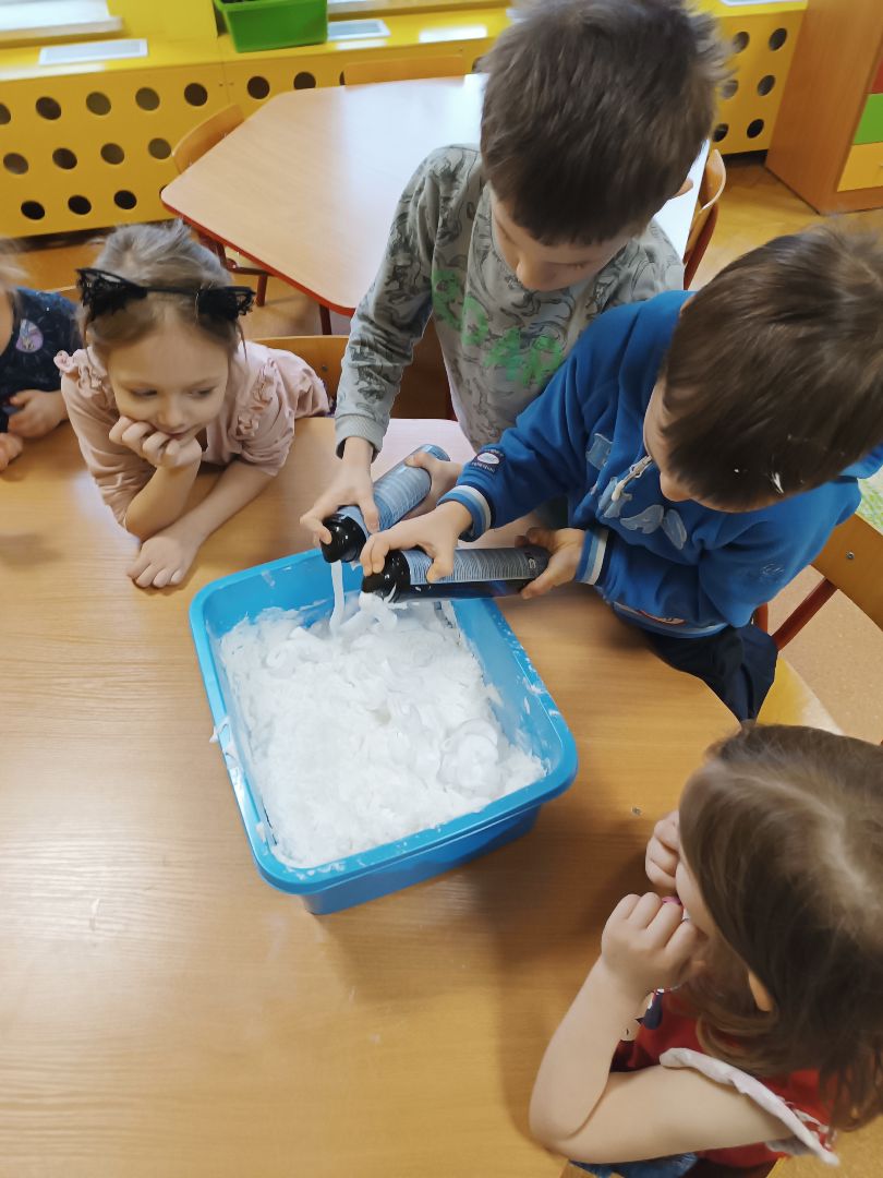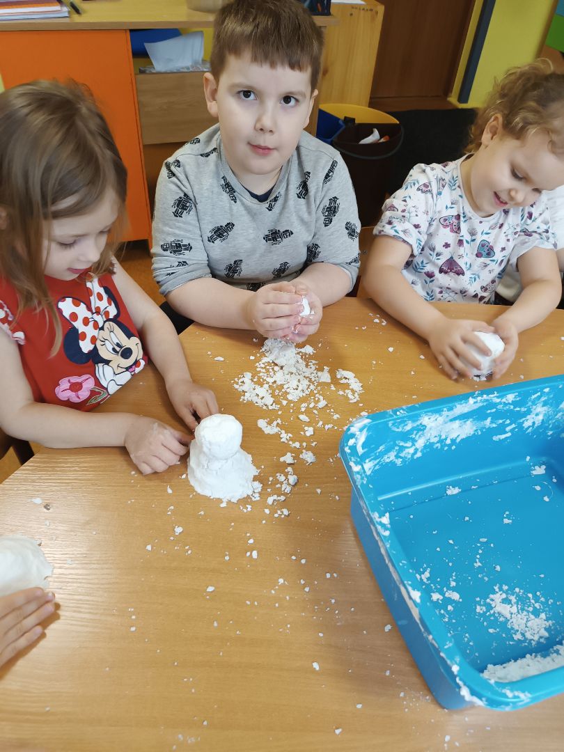 Robienie piankoliny przez dzieci sprawiło im dużo radości. Dzieci same wykonały kule śniegowe czy wulkany.