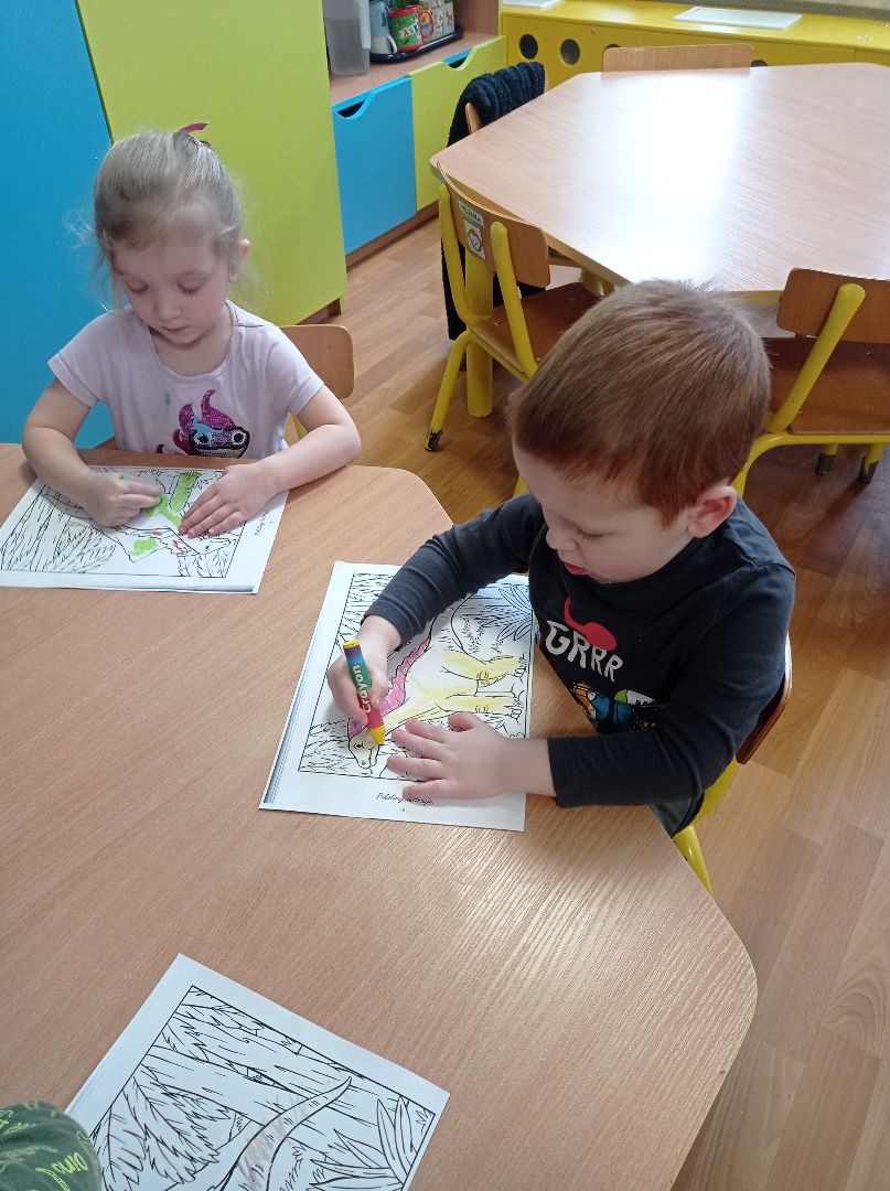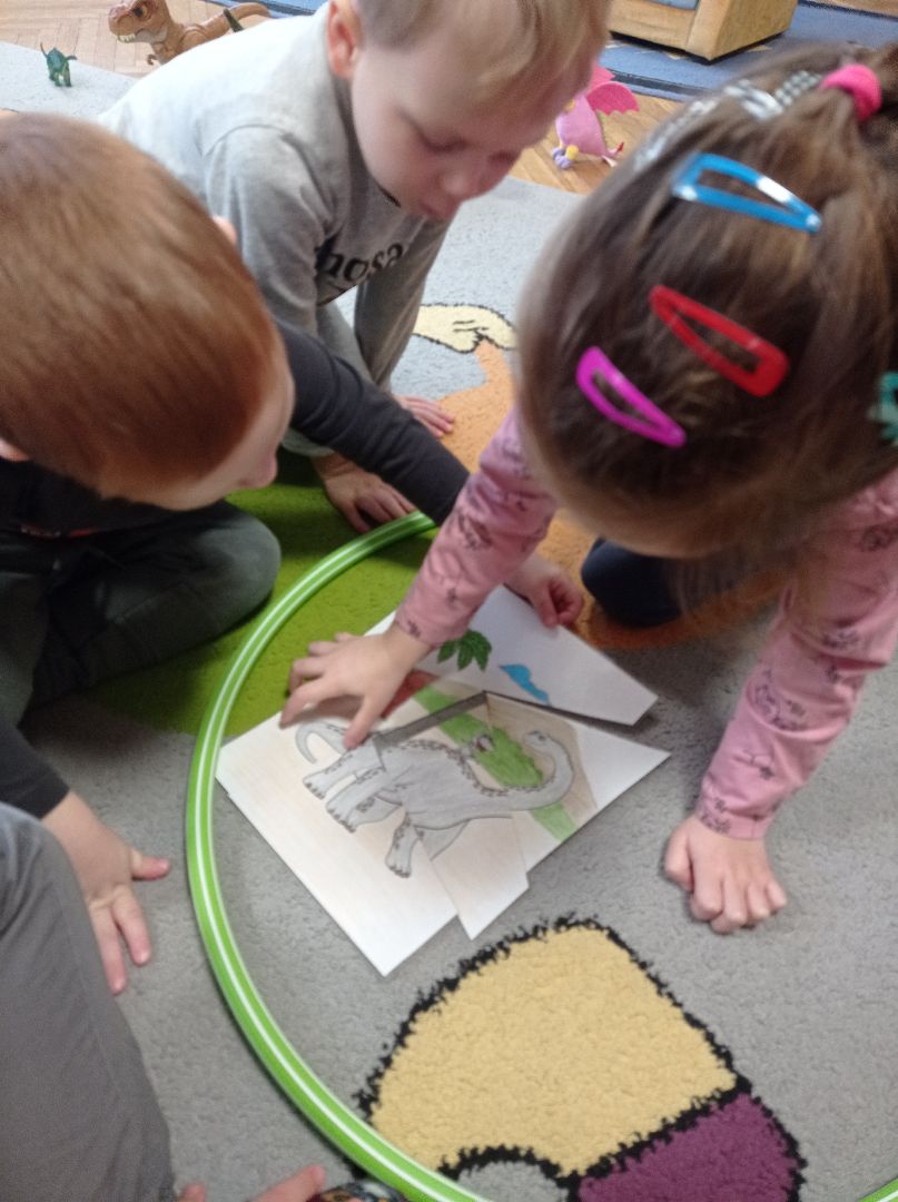Dzieci podczas wspólnej zabawy poznały prawdopodobną historię ich wyginięcia a także poznały niektórego gatunki dinozaurów.
