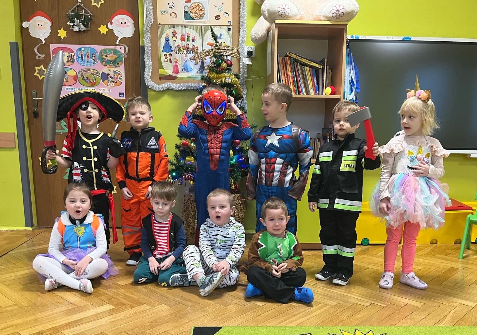W naszym przedszkolu karnawał to czas pełen radości, muzyki i kolorowych strojów! Niedawno odbył się wielki Bal Karnawałowy, który na długo zapadnie w pamięci dzieci i nauczycieli. W tym wyjątkowym dniu zarówno maluchy, jak i nasza kadra wcielili się w swoje ulubione postacie z bajek, filmów i książek. Sale przedszkolne zamieniły się w prawdziwą krainę fantazji, pełną księżniczek, superbohaterów, zwierzątek i magicznych stworzeń. Całe wydarzenie poprowadził profesjonalny animator, który zadbał o to, aby nikt się nie nudził. Wspólne tańce, gry i zabawy dostarczyły mnóstwo śmiechu i wspaniałej energii. Taneczne szaleństwa w rytm ulubionych dziecięcych hitów sprawiły dzieciom dużo radości.