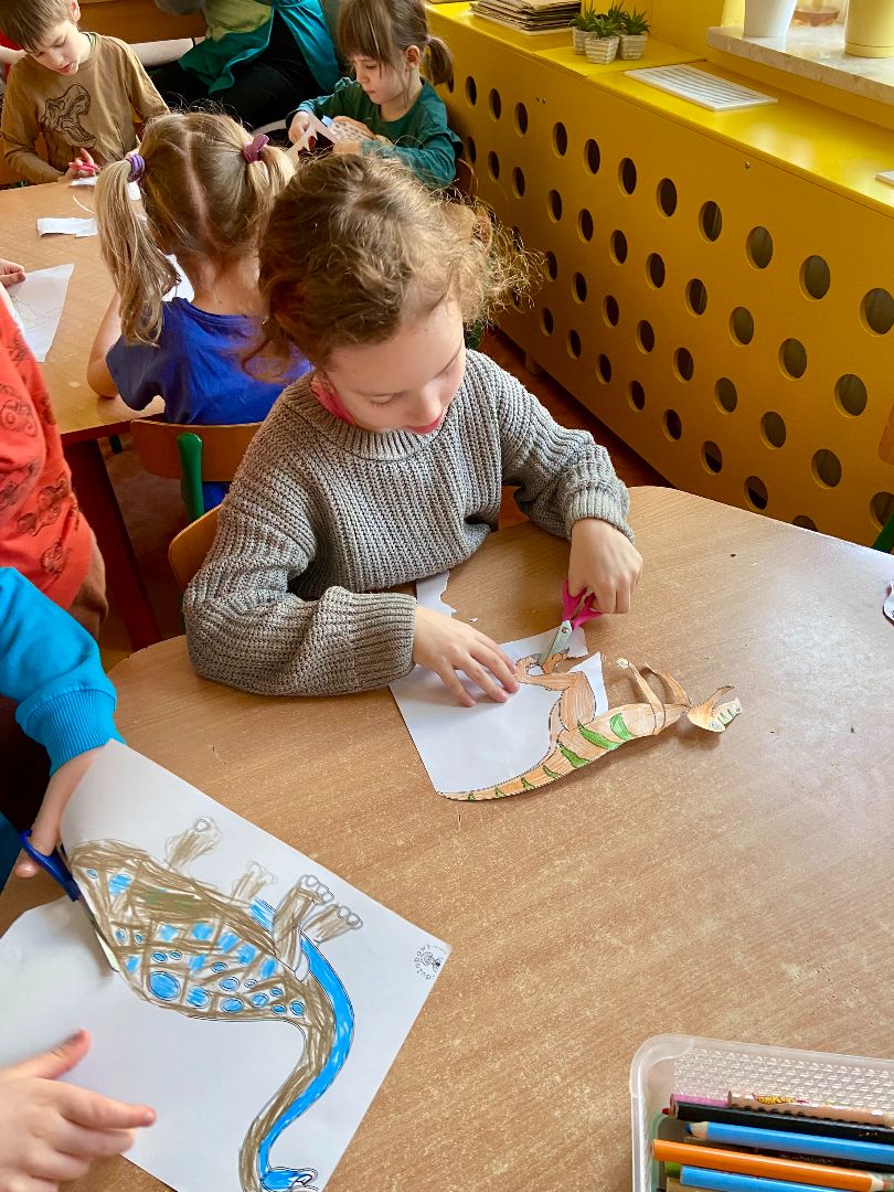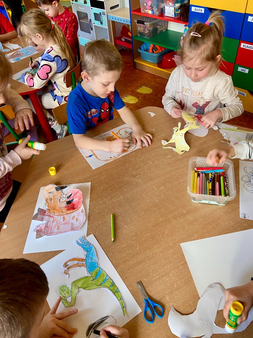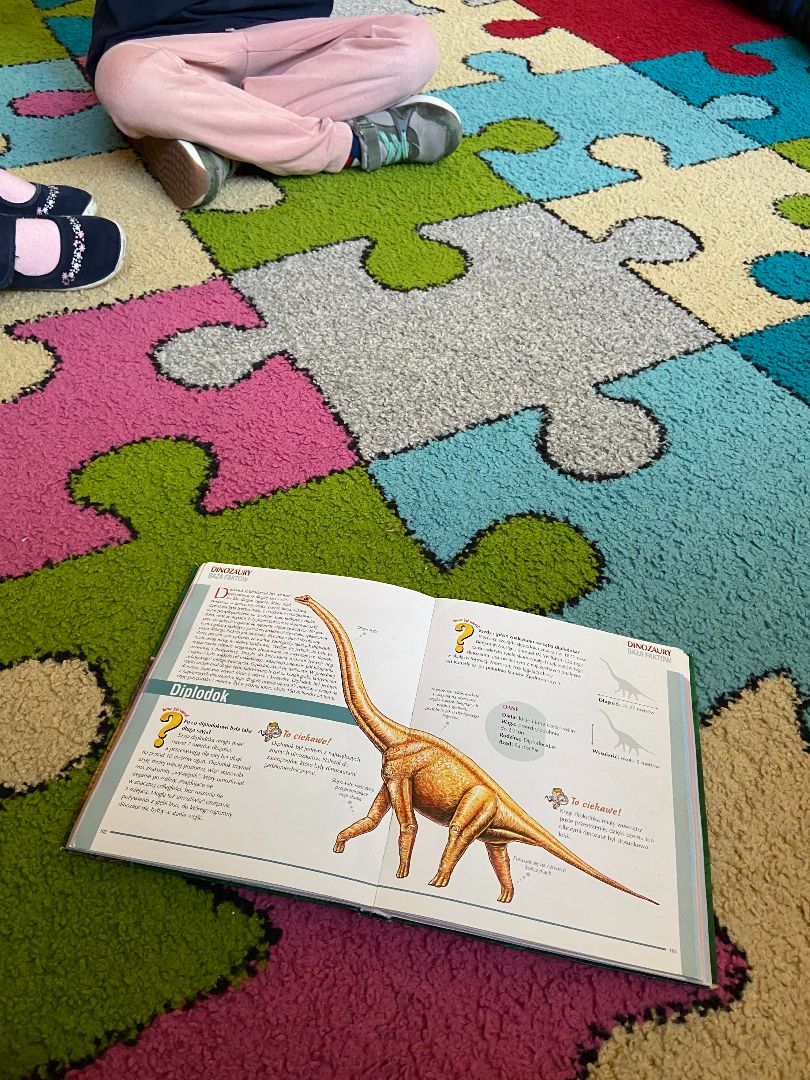 26.02.2025 r. w grupie Kłaposzuki wspólnie świętowaliśmy Dzień Dinozaura. Dzieci przeprowadziły doświadczenie "wulkan", wyszukiwały różne gatunki dinozaurów w atlasie, skakali śladami stworów, a także wykonały prace plastyczną, podczas której mogli ćwiczyć swoje umiejętności w zakresie sprawności manualnych. To był dobry, wspólny czas pełen uśmiechu i zdobywania wiedzy!