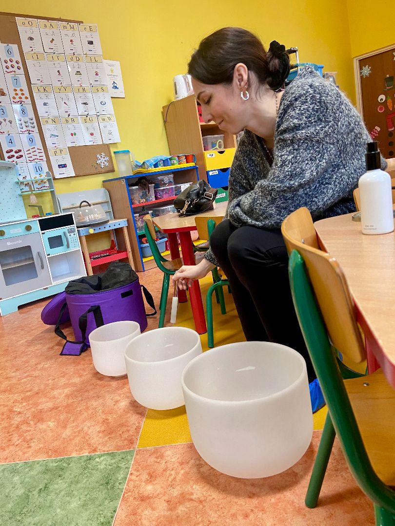 28.02.2025r. w grupie Kłapouszki mieliśmy przyjemność gościć mamę Laury, która jest masażystką. Dzieci przez cały tydzień poznawały różne zawody, dowiadywały się o istocie każdego z nich. Dziś mogły przybliżyć sobie zawód masażysty, usłyszeć dźwięk wydawany przez misy kryształowe, poznały różne techniki radzenia sobie z własnymi emocjami. Wspólnie przypomnieliśmy sobie, że nie ma złych emocji. Kłapouszki miały okazję wyciszyć się i pomysleć o własnych odczuciach. Serdecznie dziękujemy Pani Ewelinie za zaangażowanie i wizytę w naszym przedszkolu.