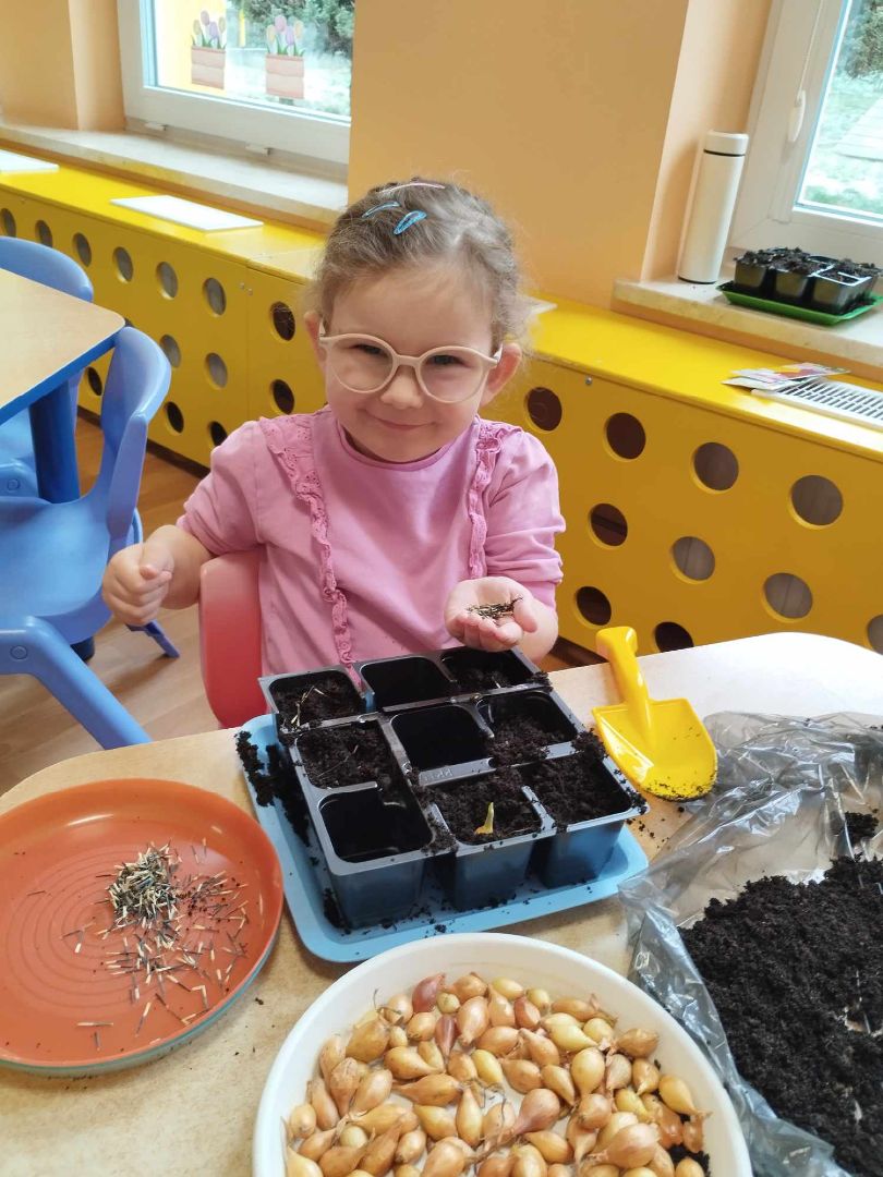 W tym tygodniu w naszej sali powstał zielony ogródek. Dzieci posadziły cebulki i zasiały owies i kwiatki. Każdy był podekscytowany tworzeniem ogródka. Teraz ustalamy dyżury w podlewaniu naszych roślinek i czekamy na kiełkowanie.
