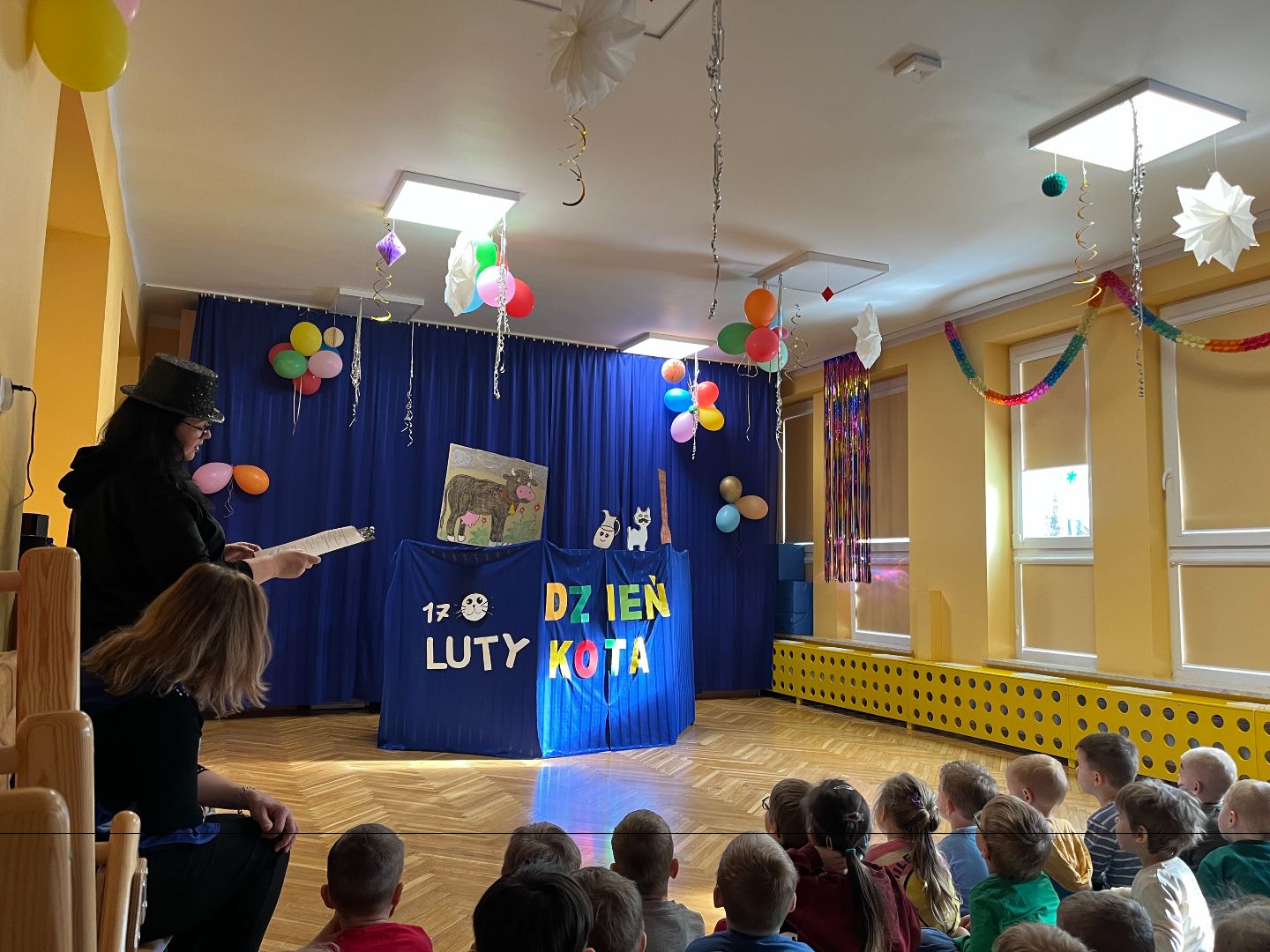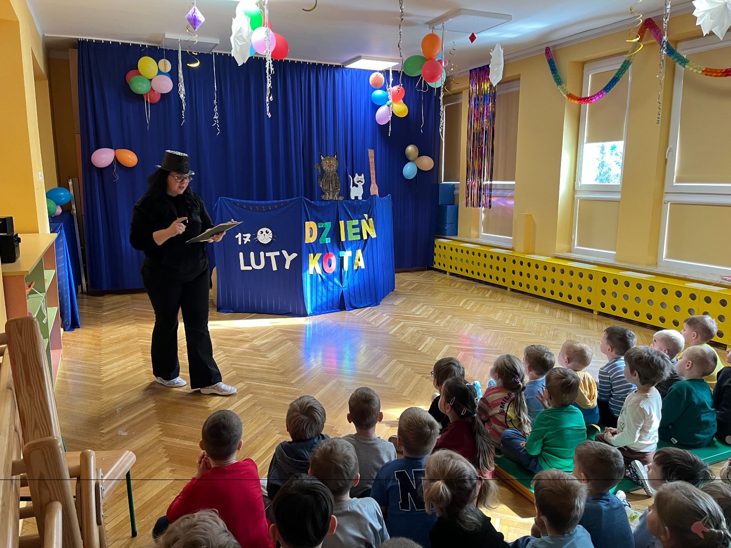 W naszym przedszkolu 17 lutego obchodziliśmy Dzień Kota, który dostarczył dzieciom wielu radosnych wrażeń i nowych wiadomości. Dzieci poznały zwyczaje i potrzeby kotów, rozmawiały o tym, jak należy opiekować się zwierzętami oraz dlaczego warto być dla nich troskliwym i delikatnym. Przedszkolaki chętnie dzieliły się także opowieściami o swoich domowych pupilach. Nie zabrakło aktywności plastycznych – dzieci wykonywały prace przedstawiające koty, rozwijając swoją wyobraźnię i zdolności manualne. Dużą atrakcją dnia był również teatrzyk, który w ciekawy i wesoły sposób przybliżył dzieciom koci świat.