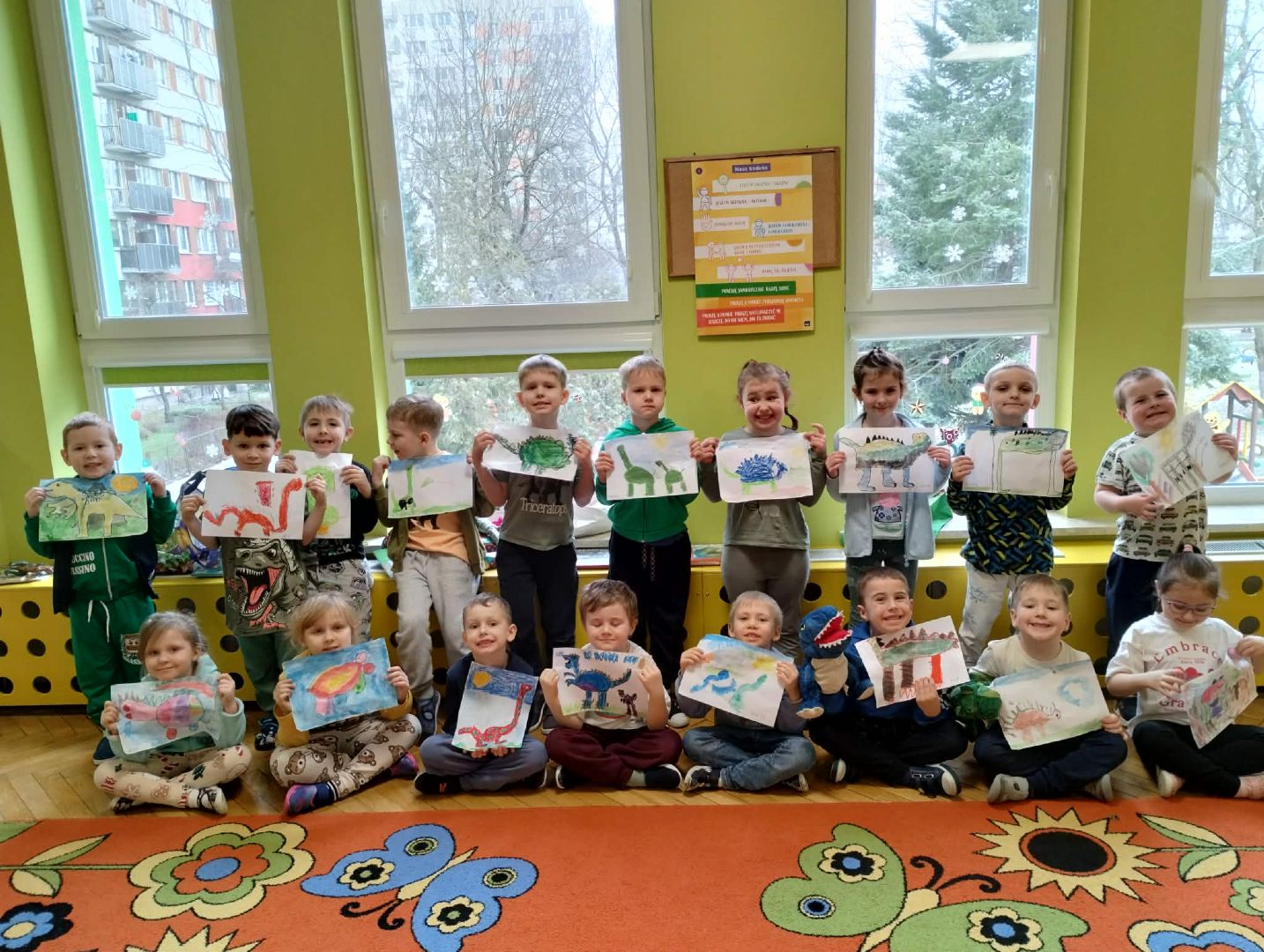 W czwartek 28 lutego w naszej grupie obchodziliśmy wyjątkowy Dzień Dinozaura. Tego dnia już od samego rana zrobiło się u nas bardzo prehistorycznie! Dzieci przyniosły z domu wspaniałe przedmioty związane z dinozaurami – figurki, książeczki, maskotki oraz inne ciekawe skarby. Każdy miał okazję zaprezentować swoją dinozaurową kolekcję i opowiedzieć o niej kolegom i koleżankom. Następnie przedszkolaki wykonały piękne prace plastyczne przedstawiające dinozaury – kreatywności i kolorów nie brakowało! Dowiedzieliśmy się także wielu ciekawostek podczas prezentacji o dinozaurach, a zdobytą wiedzę dzieci sprawdziły w specjalnym quizie. Wszyscy wykazali się ogromną wiedzą! Kolejnym punktem dnia było wykonanie dinozaurowych opasek, które dzieci z dumą nosiły na głowach. Na zakończenie odbyła się wesoła zabawa dinozaurowa, podczas której przedszkolaki mogły poczuć się jak prawdziwe prehistoryczne gady.