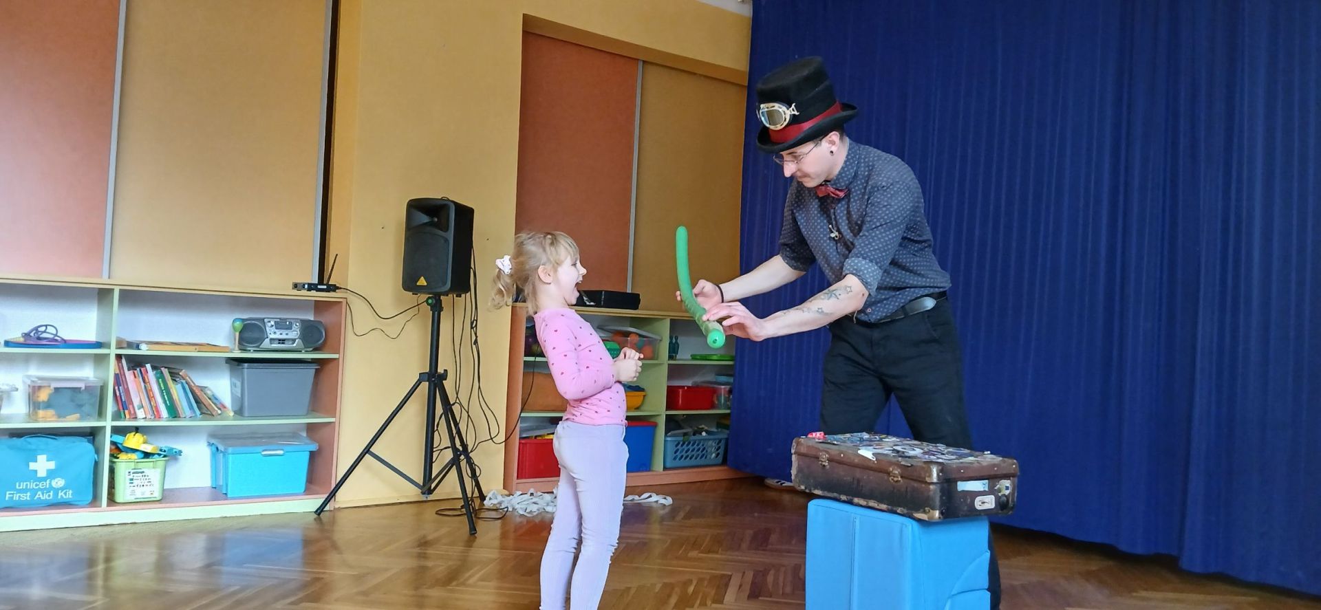 W naszym przedszkolu mieliśmy niezwykłego gościa – odwiedził nas magik, który zabrał dzieci w fascynujący świat iluzji i czarów. Już od pierwszych chwil występu wzbudził ogromne zainteresowanie i radość wśród przedszkolaków. Podczas pokazu dzieci miały okazję zobaczyć wiele niesamowitych sztuczek, a także aktywnie w nich uczestniczyć. Nie zabrakło znikających przedmiotów, magicznych przemian oraz zabawnych momentów, które wywołały mnóstwo śmiechu i zachwytu. Spotkanie z magikiem było dla dzieci niezapomnianym przeżyciem, pełnym emocji i pozytywnej energii.