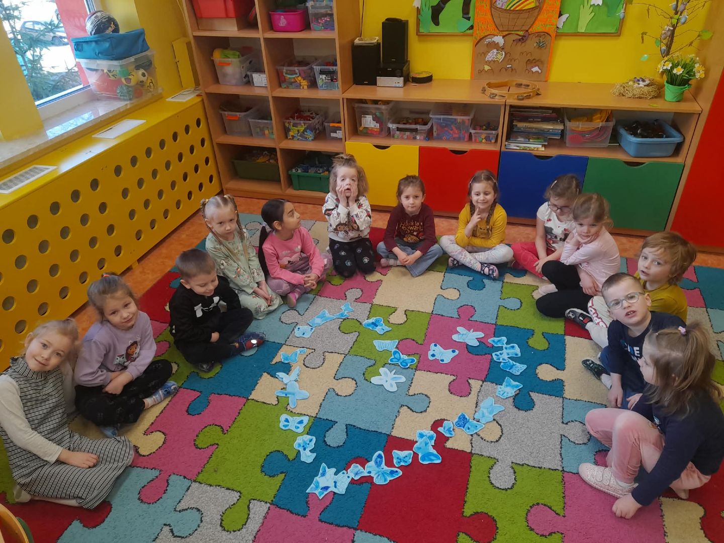 Światowy Dzień Świadomości Autyzmu to wyjątkowe święto, które obchodzimy, aby zwiększać wiedzę na temat autyzmu oraz budować postawy zrozumienia, akceptacji i szacunku wobec osób ze spektrum autyzmu. Jest to szczególnie ważne już od najmłodszych lat, ponieważ dzieci uczą się wtedy empatii, otwartości oraz dostrzegania różnorodności wśród ludzi. W naszej grupie również uczciliśmy ten dzień w sposób szczególny. Rozpoczęliśmy od rozmowy na temat tego, czym jest autyzm oraz dlaczego niektóre osoby mogą inaczej postrzegać świat, reagować na bodźce czy komunikować się z innymi. Dzieci dowiedziały się, że każdy z nas jest inny, ale wszyscy zasługujemy na zrozumienie i życzliwość. Jednym z ważnych punktów dnia było wysłuchanie opowiadania pt. „Braciszek”, które w przystępny sposób przybliżyło dzieciom specyfikę funkcjonowania osoby z autyzmem. Historia pomogła przedszkolakom lepiej zrozumieć emocje i zachowania bohatera, a także uświadomiła, jak ważna jest cierpliwość i akceptacja wobec innych. Podczas zajęć nie zabrakło również wspólnych zabaw i aktywności. Zorganizowano zabawy integracyjne, uczące współpracy i wzajemnej pomocy, w których dominował kolor niebieski – symbol solidarności z osobami ze spektrum autyzmu. Obchody tego dnia były nie tylko okazją do zdobycia nowej wiedzy, ale przede wszystkim do kształtowania postaw pełnych tolerancji, empatii i szacunku.