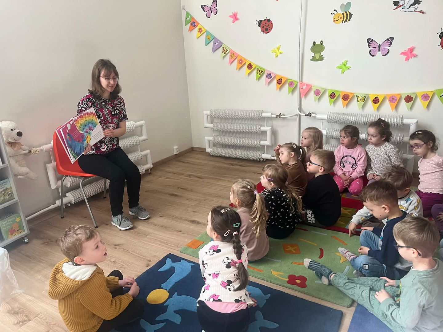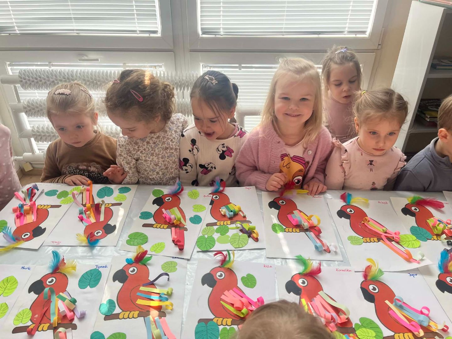 14.04.2026 r grupa Tygryski udała się do pobliskiej biblioteki . Wyjście było dla 4- latków bardzo ciekawym i radosnym doświadczeniem. Dzieci już od samego początku były podekscytowane wizytą w miejscu pełnym książek. Po przybyciu zostały serdecznie powitane przez panią bibliotekarkę. Głównym tematem spotkania były ptaki. Dzieci obejrzały kolorowe książki z ilustracjami różnych gatunków ptaków, Wysłuchały opowiadania pt; Paw. Dzieci chętnie dzieliły się spostrzeżeniami. Na koniec wizyty wykonały kolorowe prace ptaków. Wyjście było udane, dzieci wróciły do przedszkola bogatsze o nowe wiadomości i doświadczenia.
