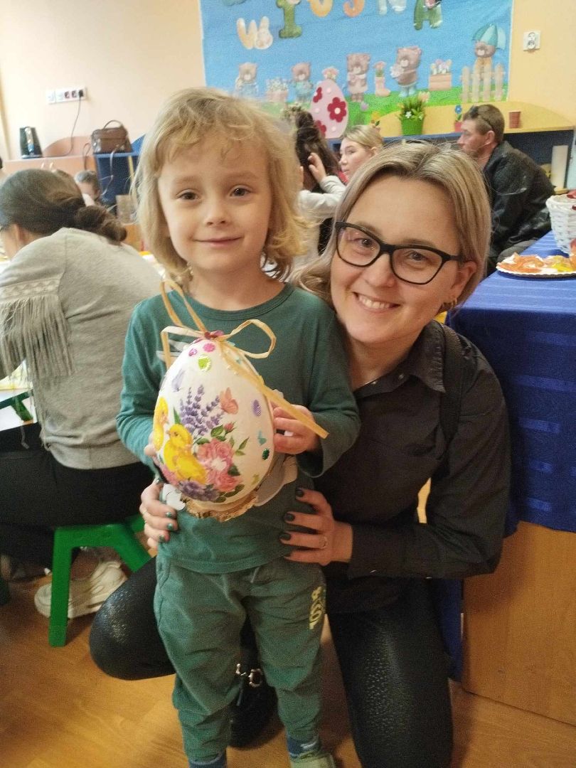 8 kwietnia w naszej grupie odbyły się wyjątkowe zajęcie otwarte dla rodziców, które na długo zostaną w naszej pamięci! Dzieci wraz z rodzicami miały okazję wspólnie celebrować zbliżające się Święta Wielkanocne w atmosferze radości, kreatywności i rodzinnego ciepła.Spotkanie rozpoczęliśmy od występu naszych przedszkolaków – dzieci z dumą zaprezentowały wiosenną piosenkę, którą przygotowywały z ogromnym zaangażowaniem. Gromkie brawa i uśmiechy rodziców były najlepszą nagrodą za ich trud!Nie zabrakło także wspólnej zabawy – rodzice i dzieci połączyli siły  na parkiecie i razem zatańczyli do piosenki „Wiosna dookoła”. Ta część spotkania wywołała wiele śmiechu i radości – widok tańczących wspólnie rodzin był naprawdę bezcenny! Największą atrakcją warsztatów było ozdabianie pisanek metodą decoupage. Każda rodzina mogła stworzyć swoje unikalne świąteczne dzieła – barwne, pełne wzorów i osobistego charakteru. Efekty prac zachwyciły wszystkich, a sam proces twórczy był okazją do rozmów, śmiechu i wspólnego spędzania czasu.Dziękujemy wszystkim rodzicom za obecność i zaangażowanie – dzięki Wam to spotkanie miało tak wyjątkowy, rodzinny klimat. Cieszymy się, że mogliśmy razem tworzyć piękne wspomnienia!