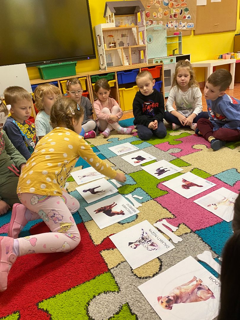 W dniu 24.10 w naszej grupie obchodziliśmy Dzień Kundelka – święto wszystkich psów, zarówno rasowych, jak i tych najbardziej wyjątkowych, czyli kundelków. Podczas zajęć dzieci dowiedziały się, jak właściwie opiekować się psem – czym należy go karmić, dlaczego ważne są spacery, zabawa i regularne wizyty u weterynarza. Przedszkolaki poznały także różne rasy psów oraz odkryły, że psy mogą wykonywać wiele ważnych zawodów – mogą być ratownikami, przewodnikami osób niewidomych, policjantami czy terapeutami. Nie zabrakło również twórczych działań – dzieci wykonały piękne psie maski, a następnie z radością zamieniły się w wesołe pieski. W sali rozbrzmiewało szczekanie i merdanie ogonkami! Na zakończenie przedszkolaki wzięły udział w zabawie tropiącej, podczas której niczym prawdziwe pieski poszukiwały ukrytych kostek. Dzieciaki dobrze się bawiły a jednocześnie zrozumiały, że pies to wierny przyjaciel człowieka, który zasługuje na troskę, miłość i odpowiedzialną opiekę.