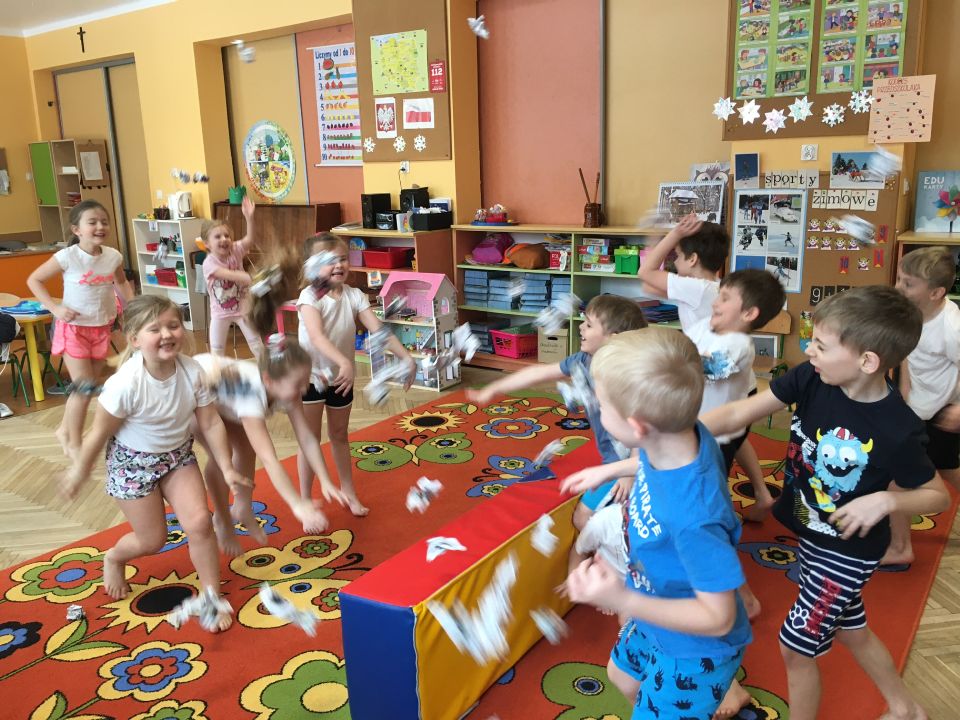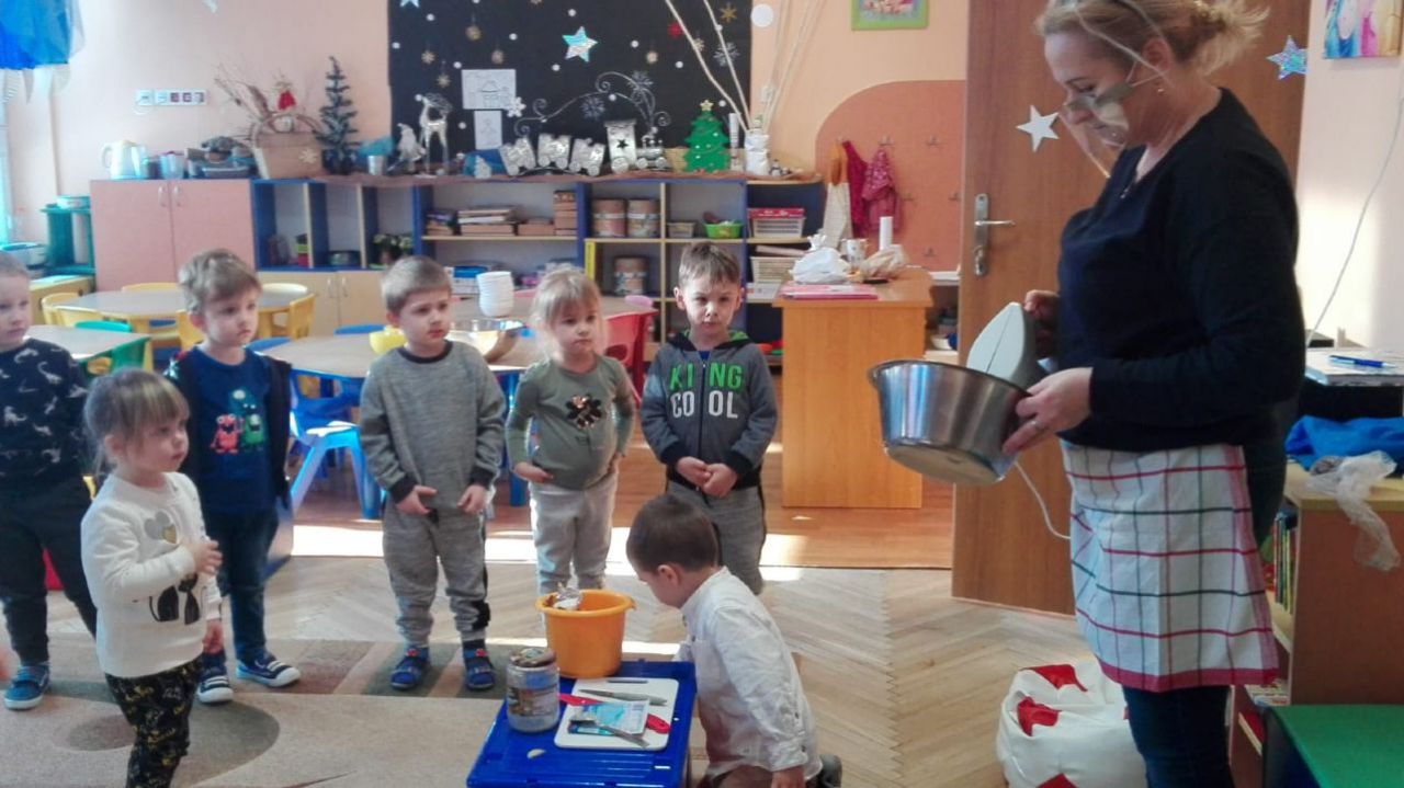 Dzisiaj tj. 9 lutego obchodziliśmy w naszej grupie Międzynarodowy Dzień Pizzy. Tego dnia nasza sala przedszkolna zamieniła się we włoską pizzerię. Przedszkolaki bawiąc się w kucharzy przygotowały prawdziwą pizzę.