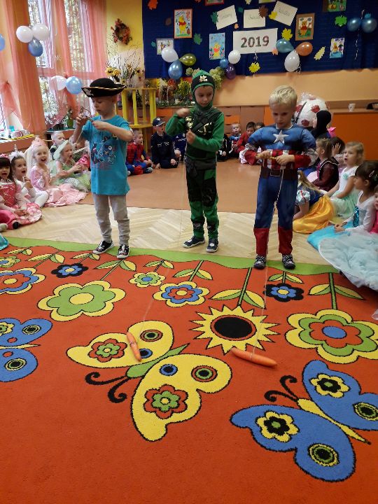 Grupa „Kłapouszki” wybrała się na spektakl teatru Tańcobajka „Smoki, Damy i Rycerze” to historia wyprawy Dzielnego Rycerza Wiktora wraz z chłopcami oraz Dzielnej Księżniczki Doroty wraz z dziewczynkami na polowanie na strasznego Smoka. W czasie przedstawienia dzieci wspólnie z aktorami tańczyły, śpiewały i czynnie uczestniczyły w całym spektaklu.