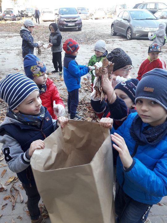 17.10.19 grupa „Króliczki ” wzięła udział w akcji „Ratujemy kasztanowce”, zbieraliśmy i zbieraliśmy aż nazbieralismy pełne worki liści kasztanowca.