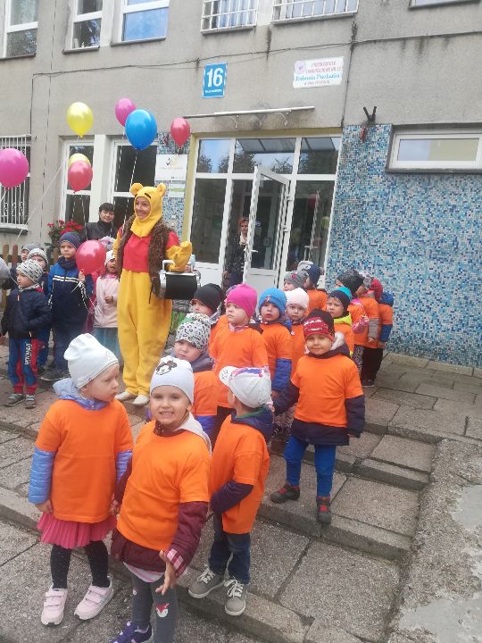 20 września dzieci z grupy IV, V i VI obchodziły Ogólnopolski Dzień Przedszkolaka. W towarzystwie Kubusia Puchatka w kolorowych strojach, z instrumentami i kolorowymi balonikami spacerowaliśmy ulicami miasta w ,, paradzie uśmiechów”. Mijanym przechodniom rozdawaliśmy naklejki uśmiechów. W parku przy fontannach recytowaliśmy wiersze, śpiewaliśmy piosenki i wesoło bawiliśmy się.