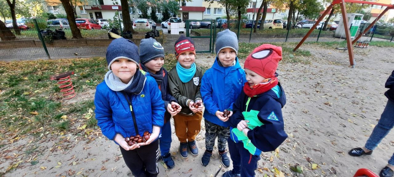 Korzystając z pięknej pogody Kłapouszki wybrały się do parku. Tam zbieraliśmy żołędzie i kasztany .