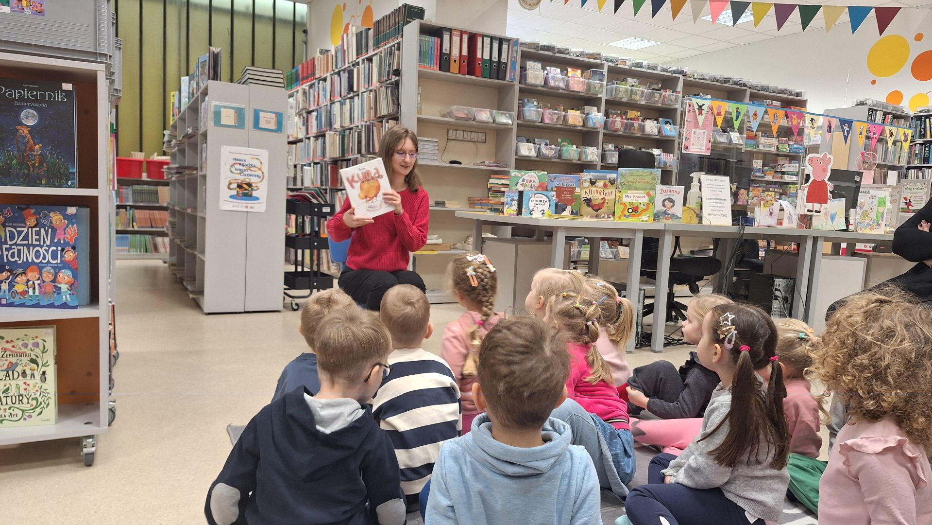 Grupa Tygrysków po raz pierwszy wybrała się do pobliskiej Filii Książnicy Podlaskiej do biblioteki. Dla wielu przedszkolaków, była to pierwsza wizyta w bibliotece. Tematem spotkania było zapoznanie dzieci z biblioteką. Dzieci dowiedziały  się co zrobić, aby stać się czytelnikiem biblioteki oraz jak należy się w niej zachowywać. Przedszkolaki z zaciekawieniem zapoznały się ze zborami bibliotecznymi oraz zwiedziły pomieszczenia pełne różnorodnych książek. Wszystkim bardzo spodobały się kolorowe i bogato ilustrowane książki, które z chęcią oglądały. Pani Ela przeczytała dzieciom książeczkę "Kura, co była na diecie" a następnie dzieci samodzielnie wykonały kurę z papieru. Wszystkim bardzo podobała się wizyta w bibliotece i głośno zapewniły, iż chętnie przyjdą na kolejne. Serdecznie dziękujemy paniom za miłą atmosferę :-) Każde dzieci oprócz kurki dostało w prezencie zakładkę do książeczki.