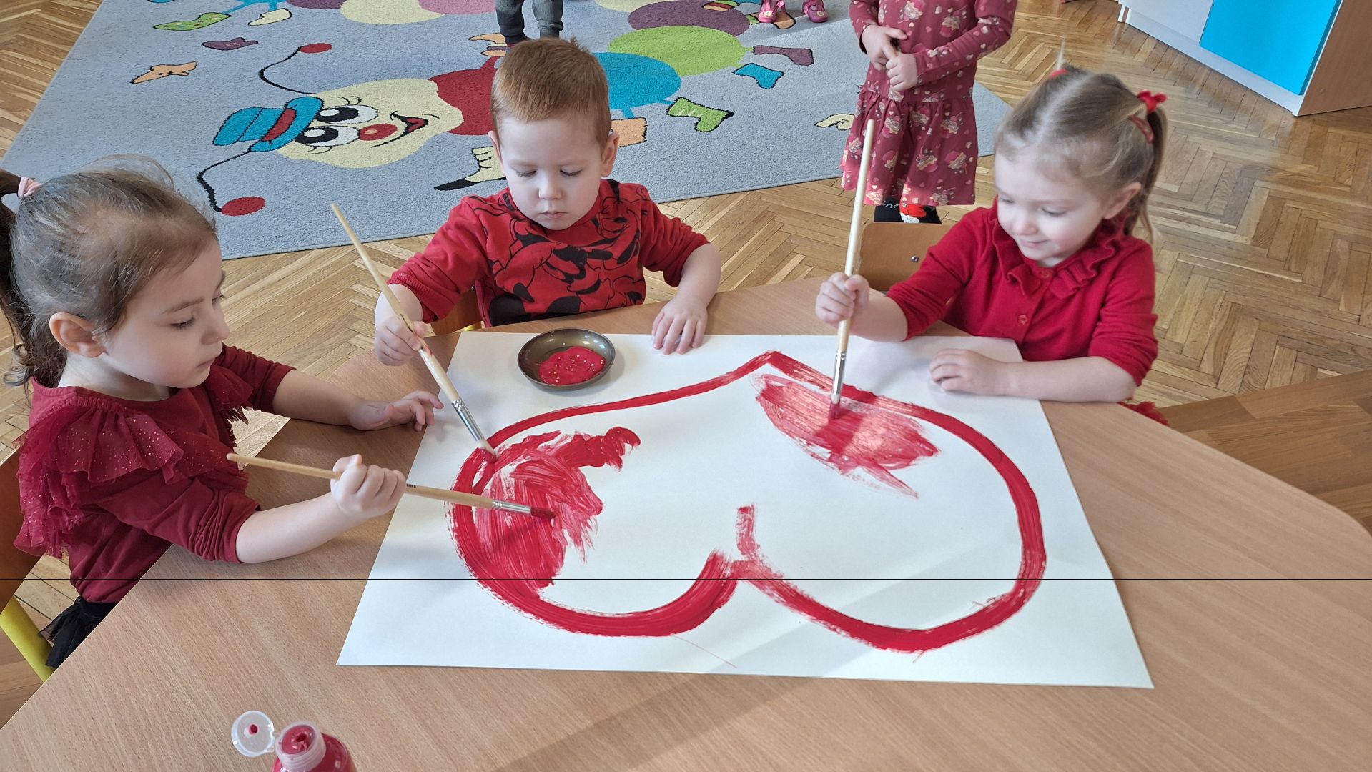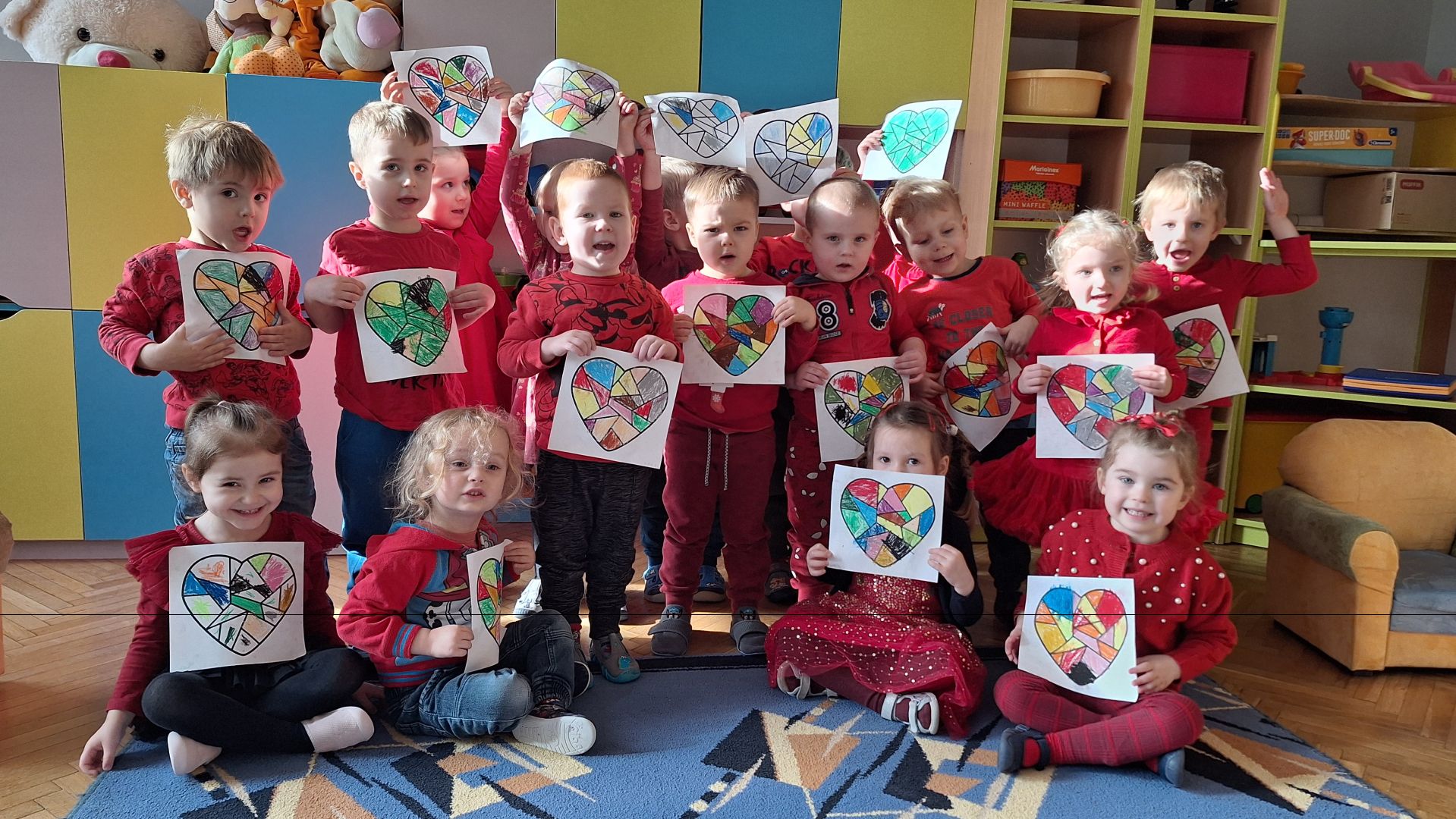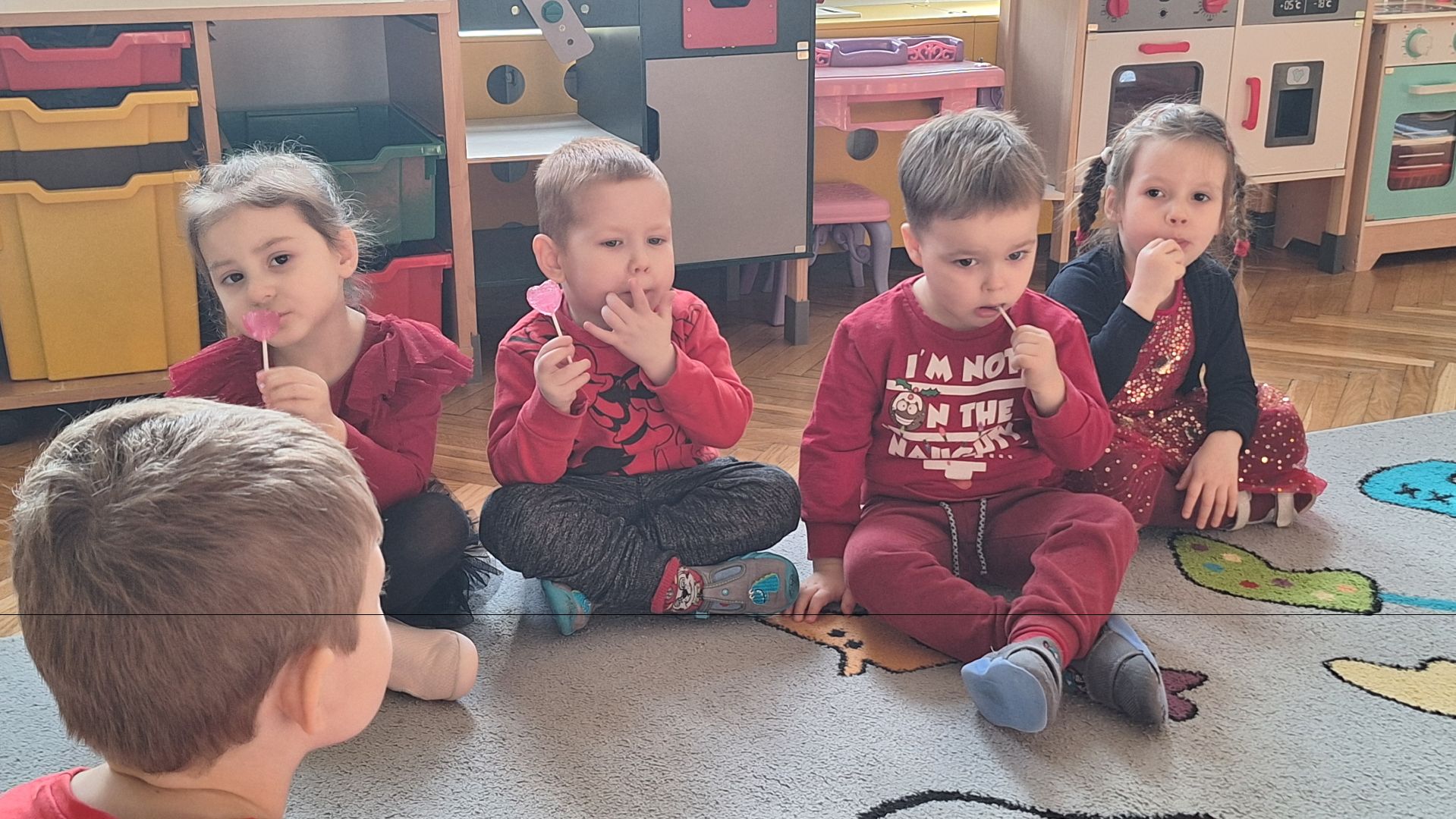 Walentynki to wyjątkowy dzień, który świętowany jest nie tylko przez dorosłych ale również i tych najmłodszych. Dla przedszkolaków stanowi symbol przyjaźni i właściwych relacji z kolegami i koleżankami, zachęca do okazywania sobie sympatii, życzliwości i akceptacji. W tym dniu Maleństwa rozmawiały o tym, co to jest miłość i przyjaźń, samodzielnie wykonały kolorowe "walentynki" oraz wielkie czerwone serce. Nie zabrakło także sercowych kolorowanek, spontanicznych emocji oraz pozytywnych uczuć. Na koniec tego czerwonego dnia każde dziecko otrzymało pysznego lizaka oraz serduszko od pani. Dzień z pewnością można zaliczyć do udanych.