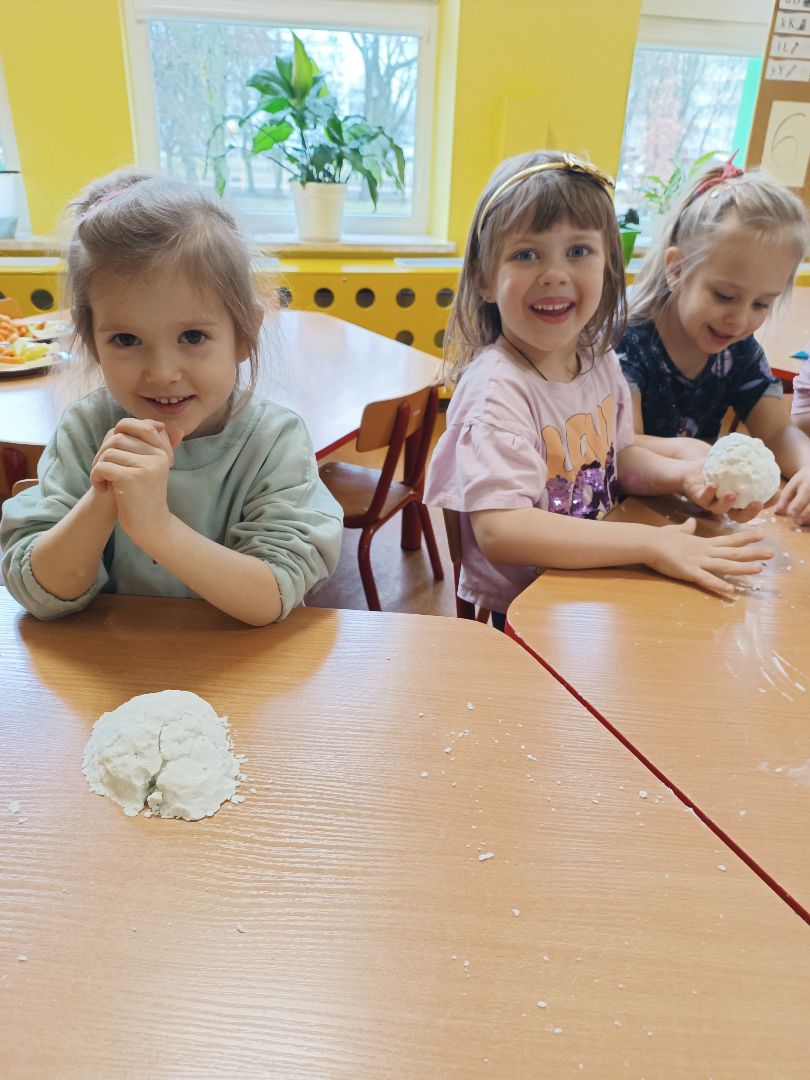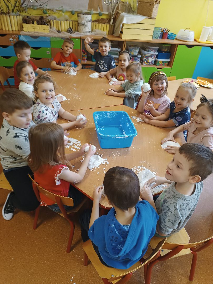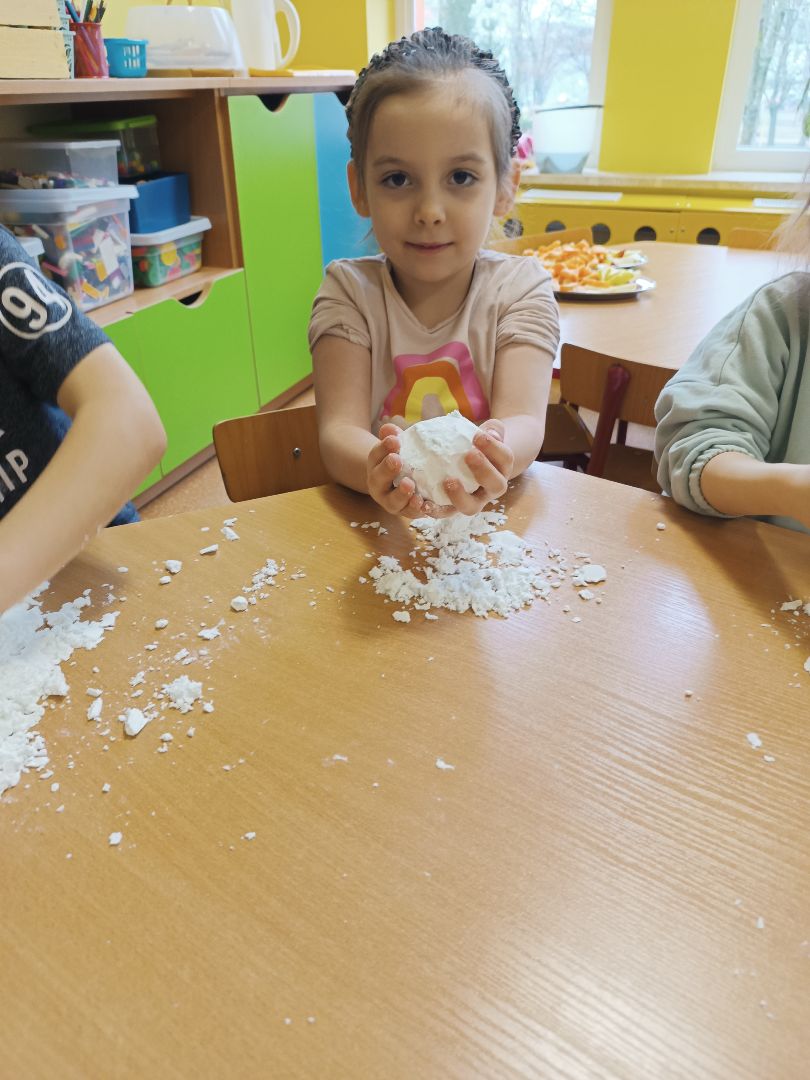 Robienie piankoliny przez dzieci sprawiło im dużo radości. Dzieci same wykonały kule śniegowe czy wulkany.
