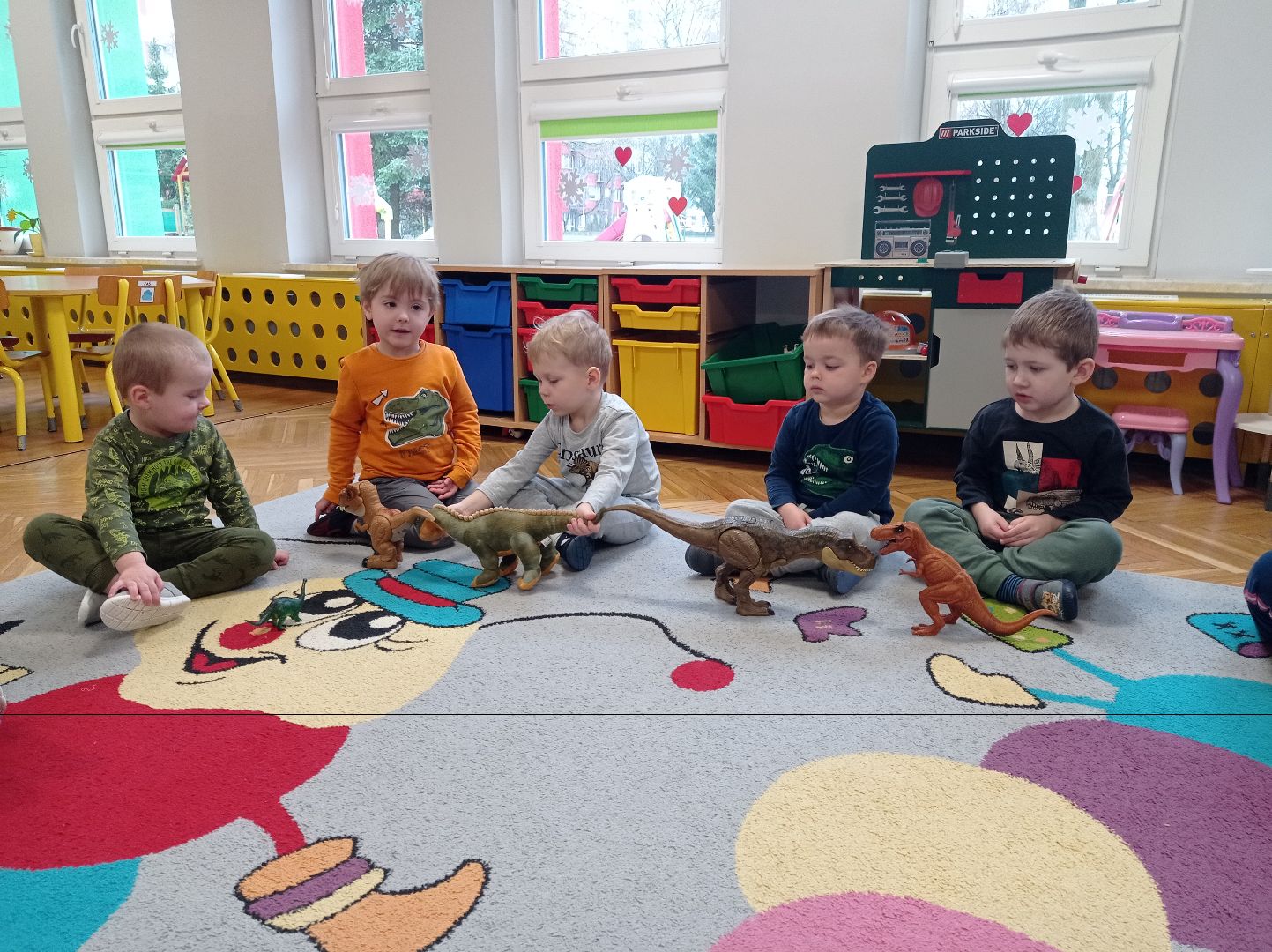 Tego dnia przedszkolaki z grupy Maleństwa przyniosły z domu figurki, maskotki przedstawiające różne gatunki wymarłych setki milionów lat temu gadów.