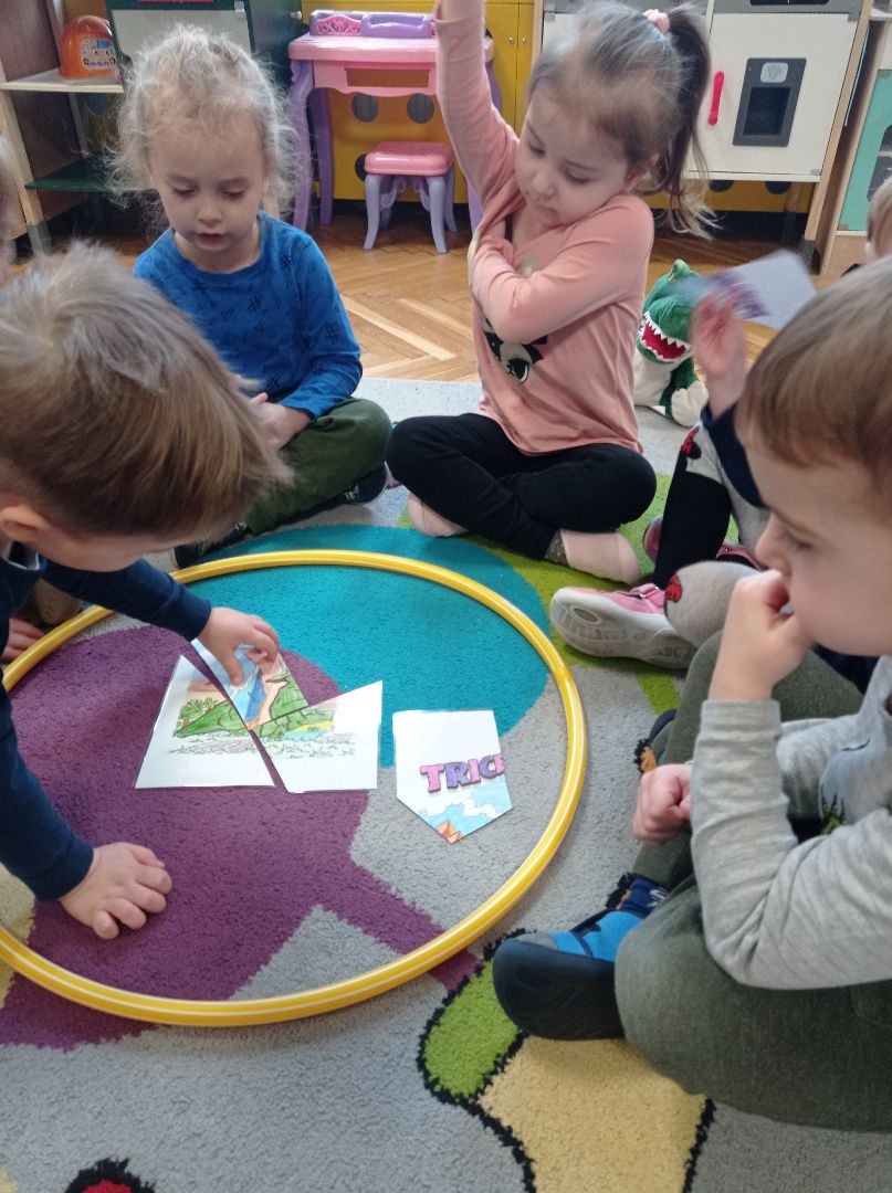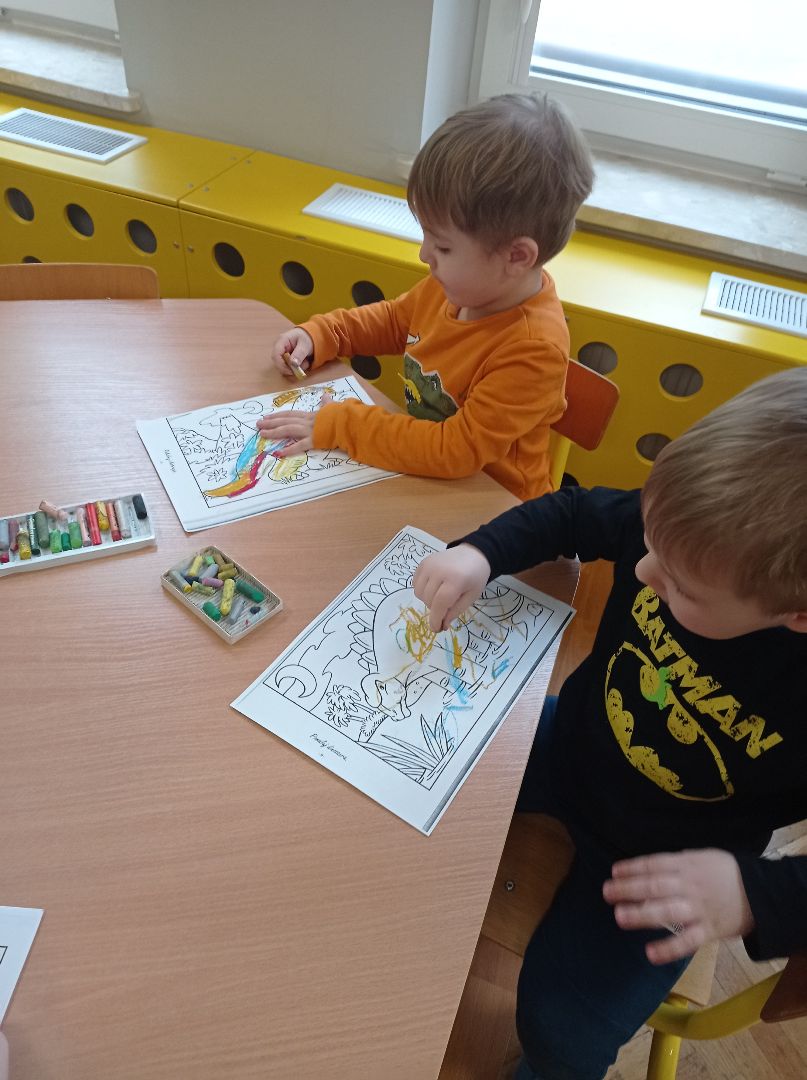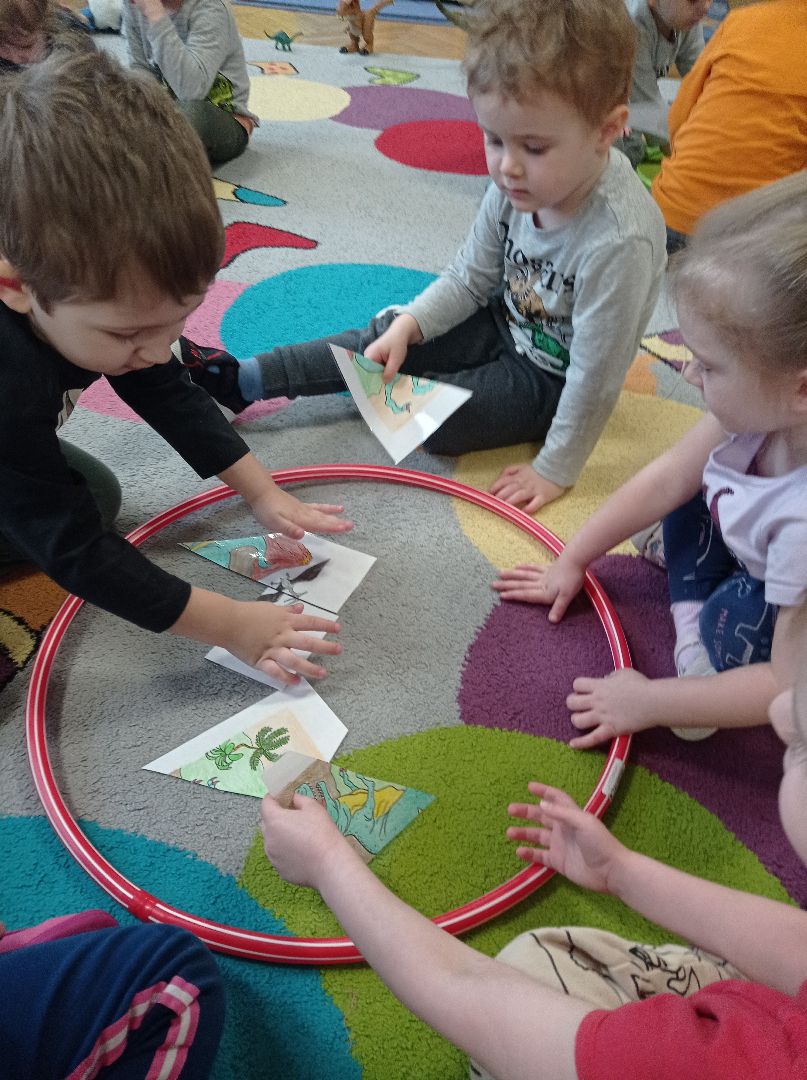 Dzieci podczas wspólnej zabawy poznały prawdopodobną historię ich wyginięcia a także poznały niektórego gatunki dinozaurów.