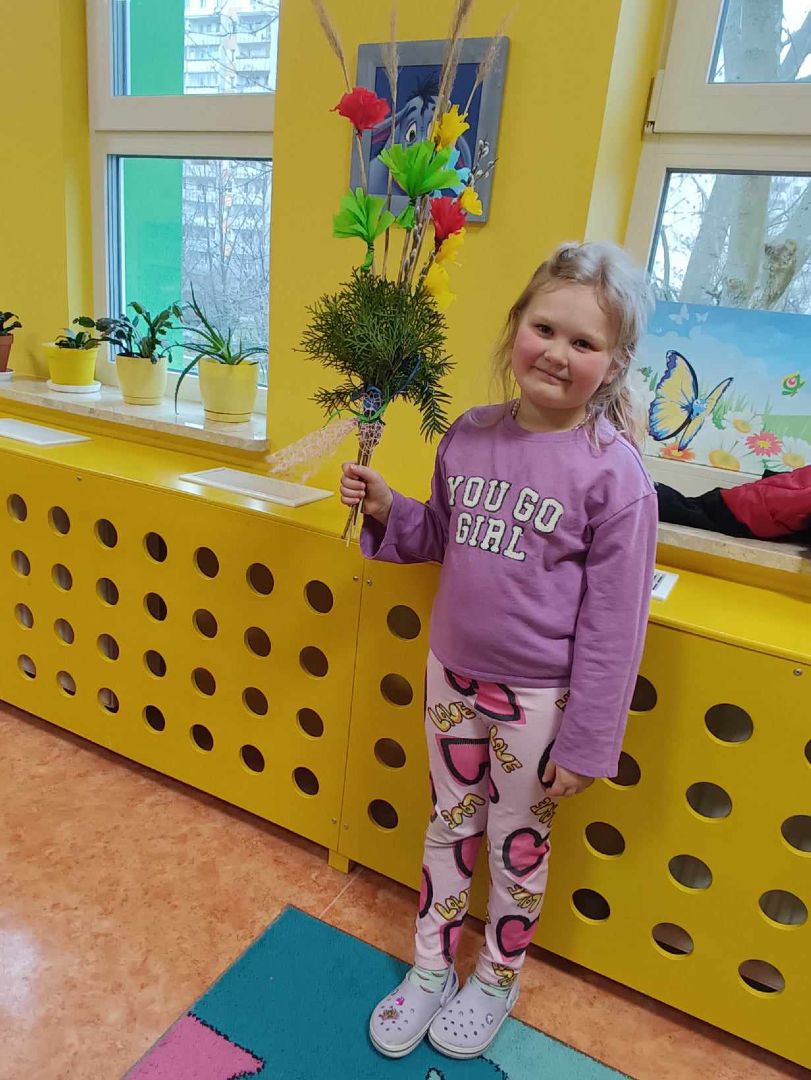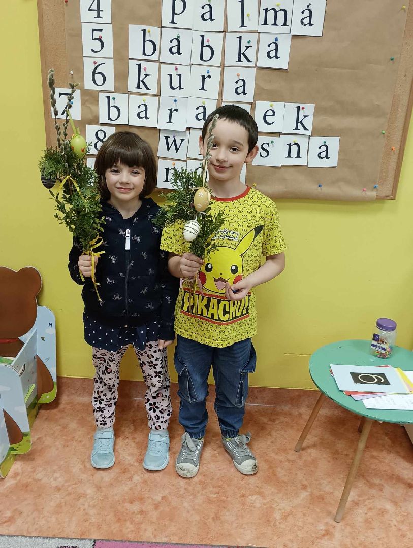 22 marca w grupie V "Kłapouszki" odbyły się warsztaty z rodzicami pt. "Wielkanocna palma". Rozpoczęliśmy od zaprezentowania rodzicom piosenki "Pani Wiosna", następnie rozwiązaliśmy wspólnie krzyżówkę wielkanocną. Płynnie przeszliśmy do głównego punktu spotkania, a więc do przygotowania wielkanocnych palm. Małe i duże "dzieła sztuki" wychodziły z rąk dzieci i rodziców. Rodzice z dziećmi, wierzbowe bazie przystrajali bukszpanem, trawą pampasową, kolorowymi kwiatami i kolorowymi wstążkami. Spędziliśmy miło czas w gronie najbliższych, rodzice mieli okazję do bezpośredniej obserwacji dziecka podczas zajęć oraz na tle grupy. To spotkanie było również, wzmacnianiem więzi rodzinnych.