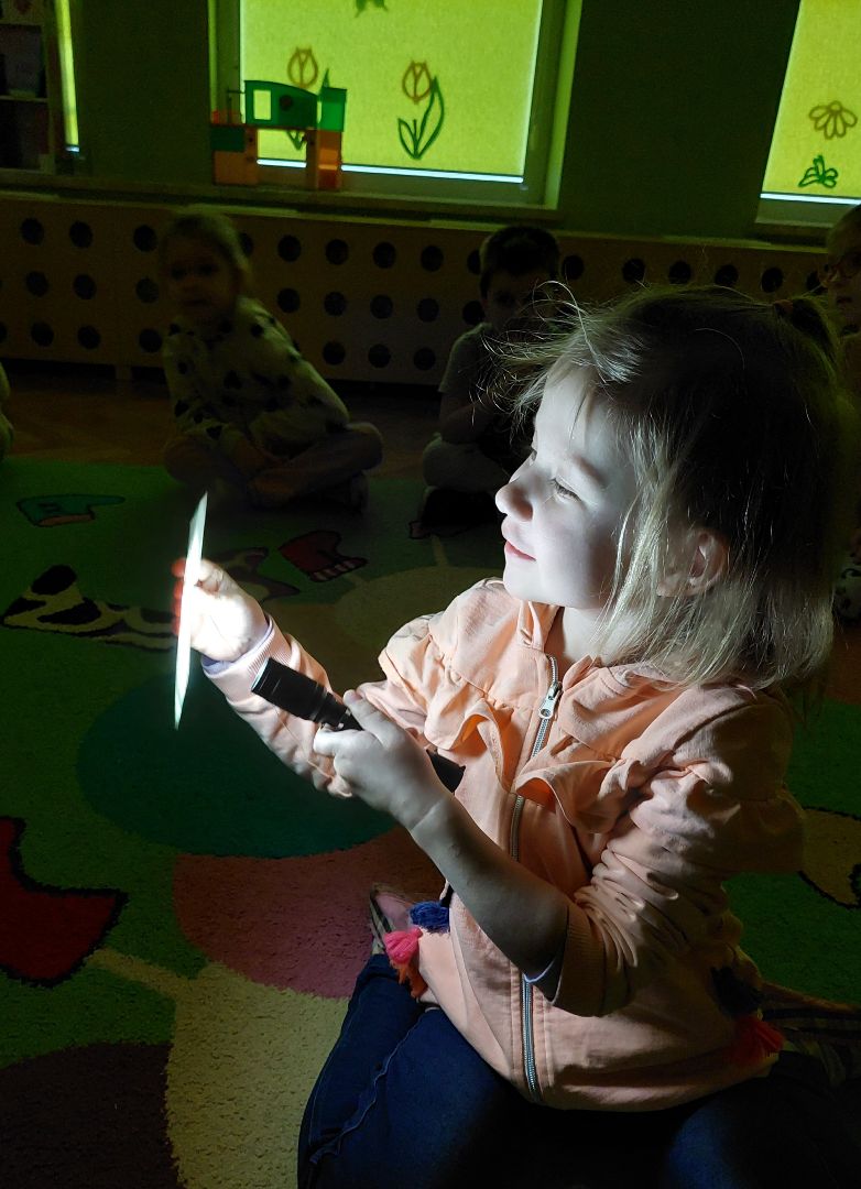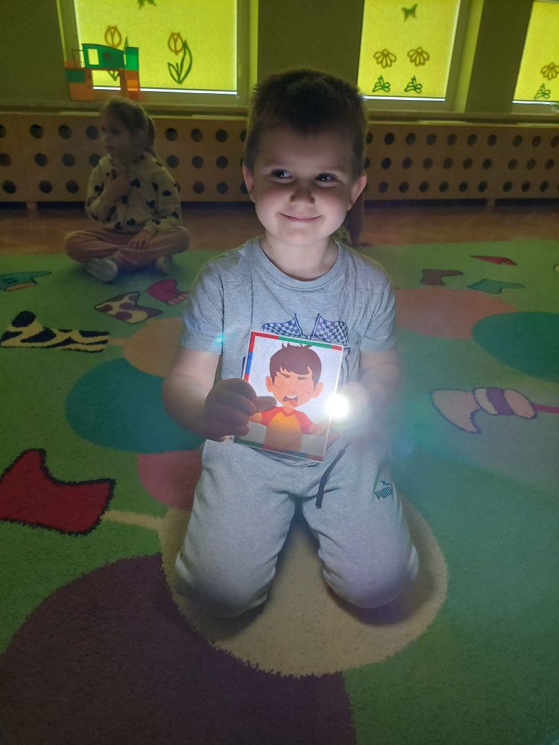 Emocje są bardzo ważne w życiu człowieka, ponieważ każdego dnia odczuwamy je w różnych sytuacjach. Dziś Puchatki miały okazję poćwiczyć rozpoznawanie uczuć w nietypowy sposób. Dzieci podświetlały latarką karty, na których ukazywały się różnorodne miny. Od teraz rozróżnianie emocji przyjemnych i nieprzyjemnych to dla Puchatków łatwe zadanie.