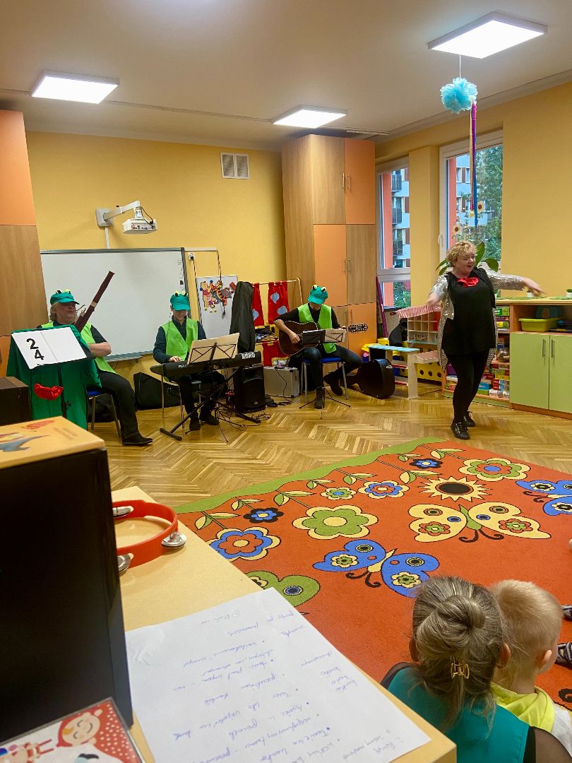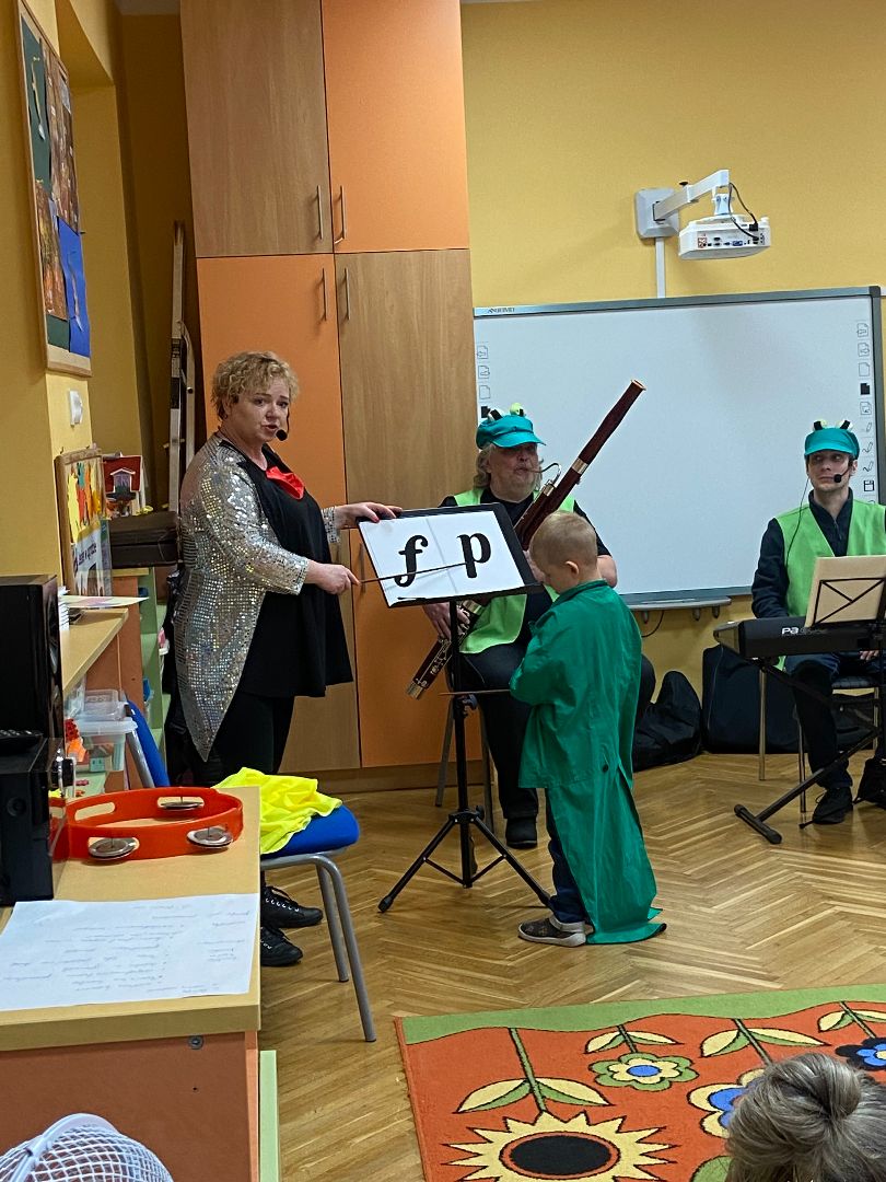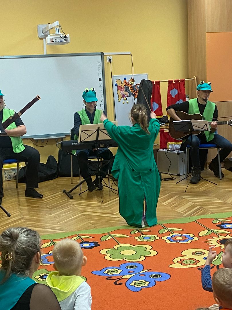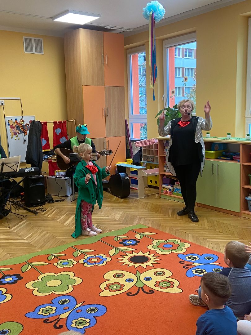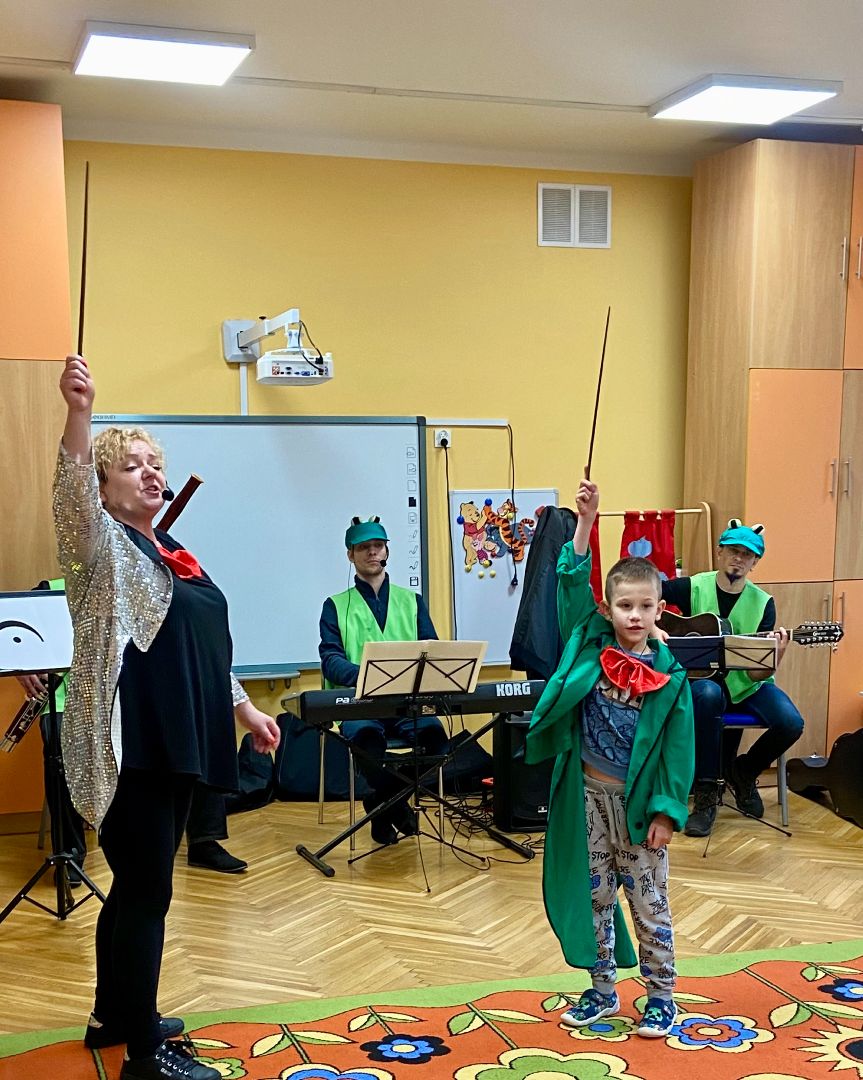 Dzisiaj w naszym przedszkolu odbyła się audycja muzyczna "Dyrygowanie to ważne zdanie", podczas której dzieci z wszystkich grup, wysłuchały utworów muzyki klasycznej, zapoznały się z elementami niezbędnymi w pracy Dyrygenta. Dzieci dowiedziały się czym jest metrum, jego rodzaje, w jaki sposób dyrygent pokazuje. Audycja muzyczna cieszyła się dużym zainteresowaniem wśród dzieci. Publiczność aktywnie brała udział w śpiewaniu piosenek, dyrygowaniu, zamykaniu dźwięku. Występ zakończył się zamianą dzieci w żabki i grą na cymbałkach. W ten sposób przedszkolaki stały się częścią zespołu muzycznego.