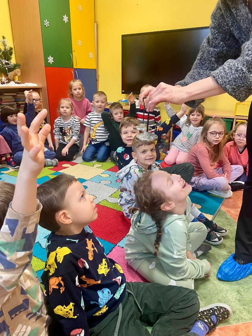 28.02.2025r. w grupie Kłapouszki mieliśmy przyjemność gościć mamę Laury, która jest masażystką. Dzieci przez cały tydzień poznawały różne zawody, dowiadywały się o istocie każdego z nich. Dziś mogły przybliżyć sobie zawód masażysty, usłyszeć dźwięk wydawany przez misy kryształowe, poznały różne techniki radzenia sobie z własnymi emocjami. Wspólnie przypomnieliśmy sobie, że nie ma złych emocji. Kłapouszki miały okazję wyciszyć się i pomysleć o własnych odczuciach. Serdecznie dziękujemy Pani Ewelinie za zaangażowanie i wizytę w naszym przedszkolu.
