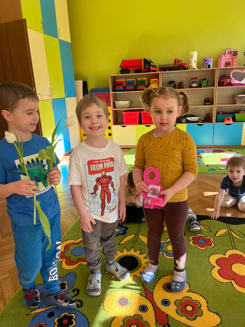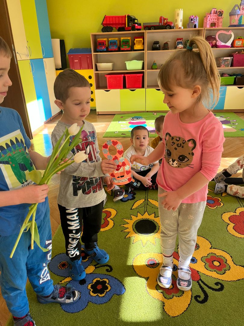Dzień Kobiet to jedno z piękniejszych okazji do świętowania w miesiącu marcu. W przeddzień 8 marca chłopcy z grupy Puchatki przygotowali dla swoich dziewczynek niespodziankę. Zrobili laurkę oraz Filipek podarował każdej dziewczynce tulipana.