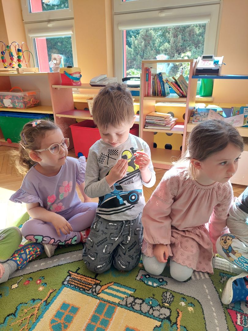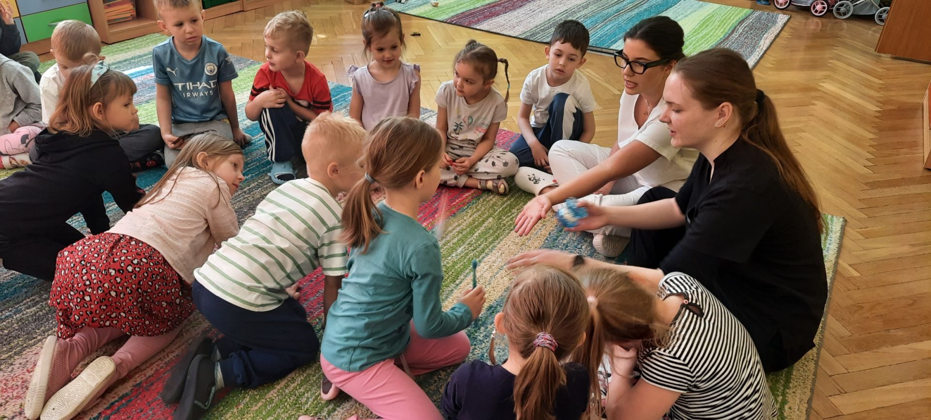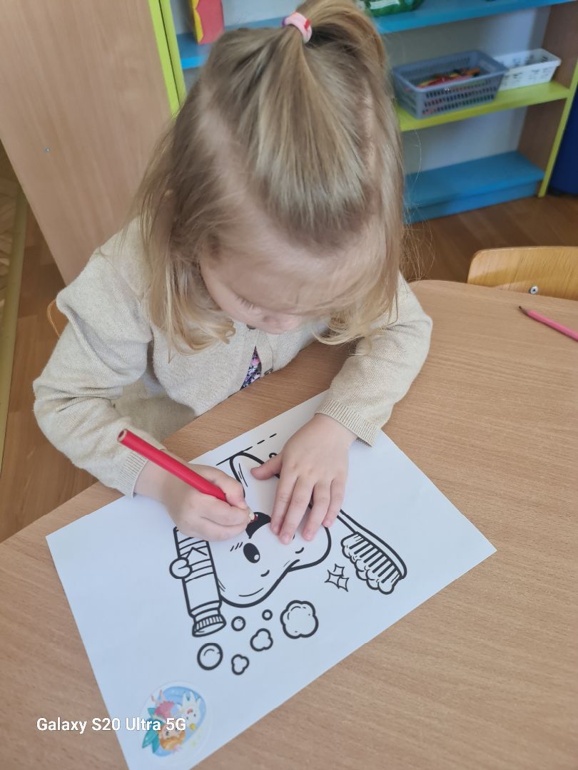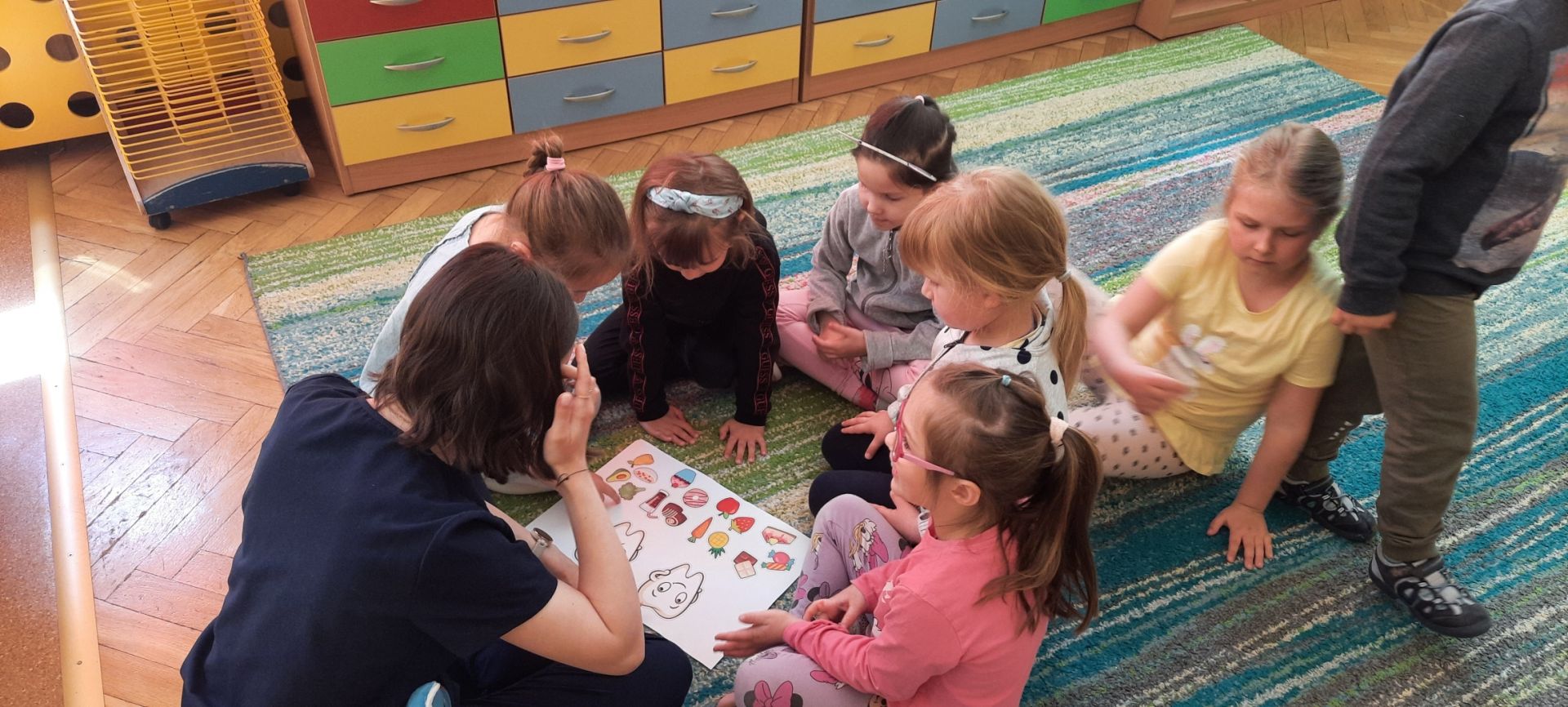 W dniu dzisiejszym w naszym przedszkolu gościliśmy panie – studentki II roku stomatologii, które przygotowały i przeprowadziły ciekawe zajęcia dydaktyczne na temat prawidłowego mycia zębów. Dzieci miały okazję dowiedzieć się, dlaczego codzienna higiena jamy ustnej jest tak ważna oraz jak prawidłowo szczotkować zęby. Studentki zaprezentowały odpowiednie techniki mycia zębów, wykorzystując kolorowe pomoce dydaktyczne, modele szczęki oraz zabawne ilustracje, które w przystępny sposób przybliżyły dzieciom temat dbania o zdrowy uśmiech. Zajęcia były bardzo interesujące i dostosowane do wieku dzieci. Poprzez zabawę, piosenki i interaktywne zadania maluchy nie tylko dobrze się bawiły, ale także zdobyły cenną wiedzę. Spotkanie to z pewnością przyczyni się do kształtowania prawidłowych nawyków higienicznych wśród najmłodszych. Dziękujemy studentkom za zaangażowanie i serdeczną atmosferę!.