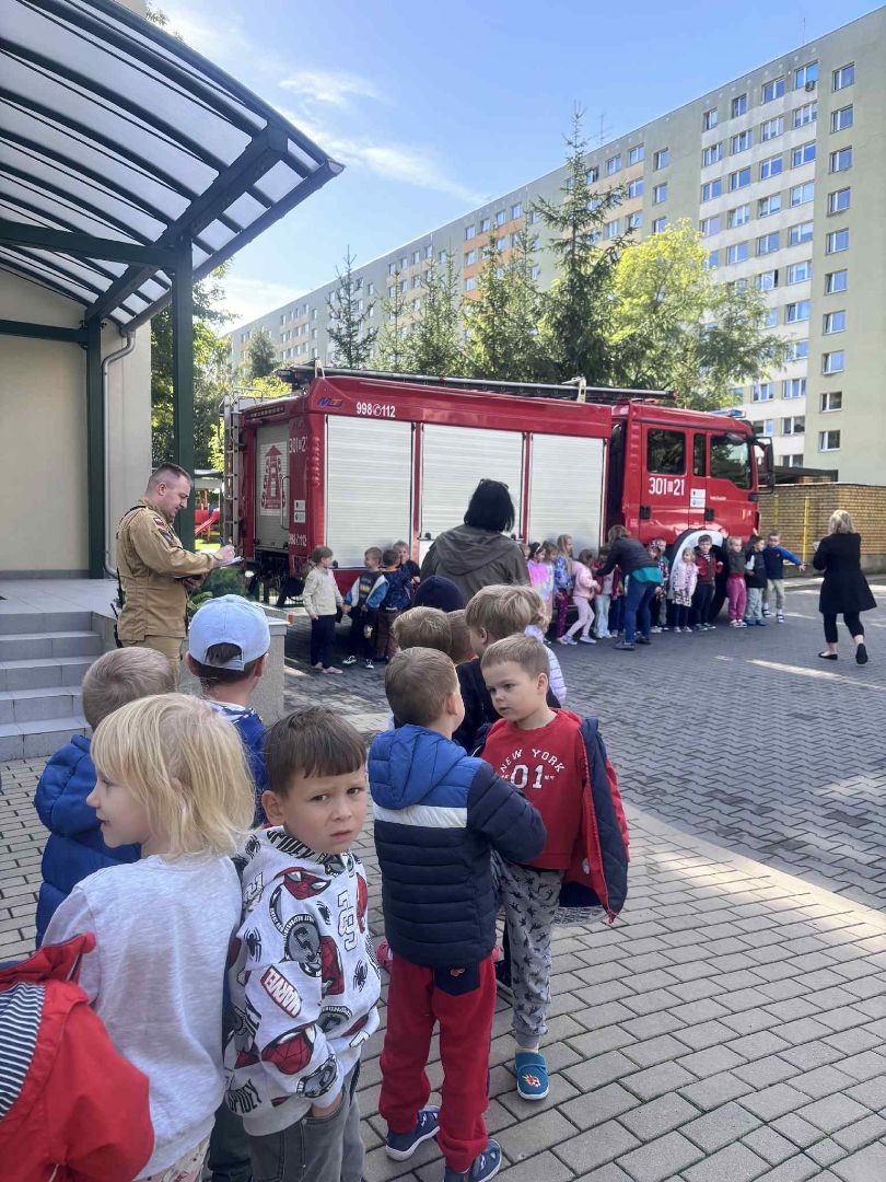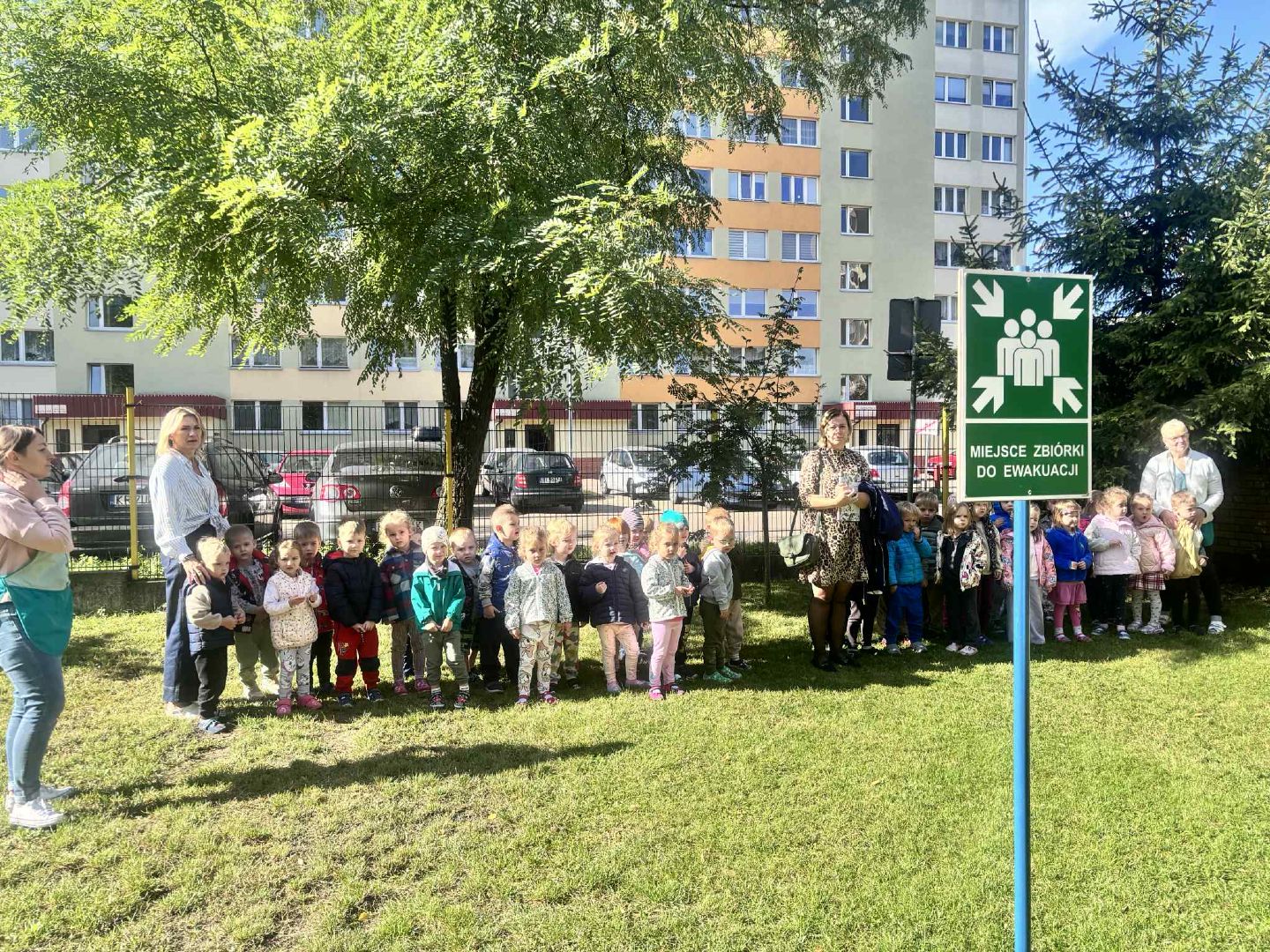 Bezpieczeństwo naszych przedszkolaków jest dla nas najważniejsze, dlatego dziś odbyła się próbna ewakuacja. Punktualnie po sygnale alarmowym dzieci wraz z nauczycielami sprawnie i bez paniki opuściły budynek, kierując się do wyznaczonego miejsca zbiórki. Całe wydarzenie obserwowali strażacy, którzy przyjechali do przedszkola wozem strażackim. Ich obecność wywołała u dzieci ogromną radość i ciekawość. Po zakończonej ewakuacji strażacy pokazali sprzęt oraz przypomnieli, jak należy zachować się w sytuacjach zagrożenia. Dzięki takim ćwiczeniom dzieci uczą się odpowiedzialności, zasad bezpieczeństwa i nabierają odwagi w kontaktach ze służbami ratowniczymi. Była to cenna lekcja, połączona z niezapomnianym spotkaniem ze strażakami.