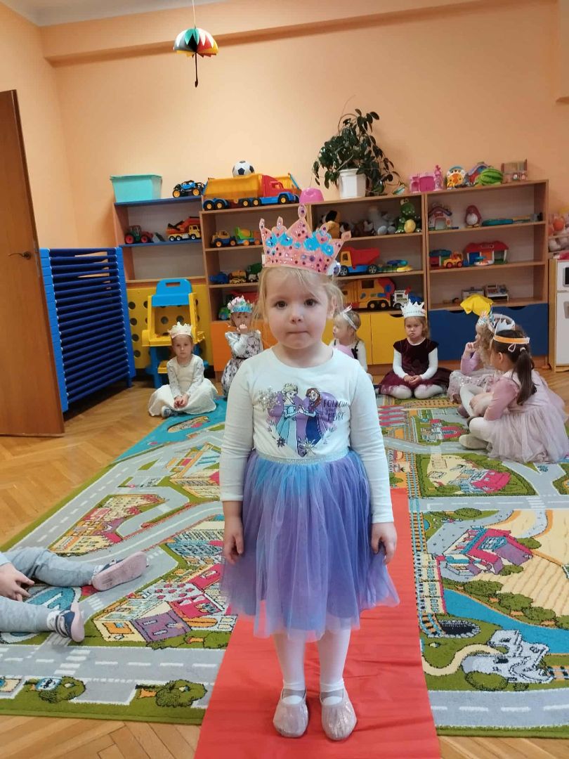 W dniu 10.10.2025 r w piątek świętowaliśmy w naszej grupie Dzień Dziewczynki. Nasze królewny założyły suknie i prezentowały się kolegom na czerwonym dywanie. Odbył się bal z balonami przy muzyce. Każda królewna otrzymała upominek, miała też na głowie własnoręcznie zrobioną koronę. Na koniec dnia dziewczynki otrzymały kwiatowe klocki , którymi bawiły się z kolegami. To był dzień integracji i tworzenia dobrych relacji między dziećmi.