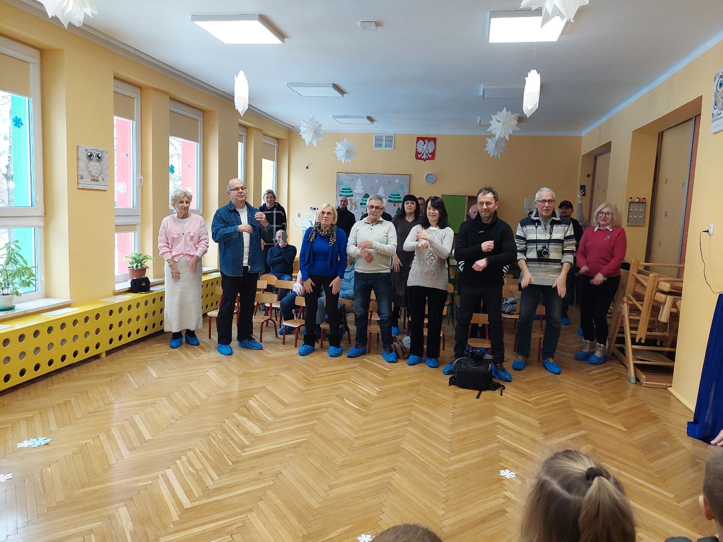 Na zakończenie części artystycznej dziadkowie zostali zaproszeni do wspólnej zabawy tanecznej. Razem z wnukami zatańczyli do znanej i lubianej piosenki „A ram sam sam”, co dostarczyło wszystkim wiele radości i wywołało mnóstwo uśmiechów.