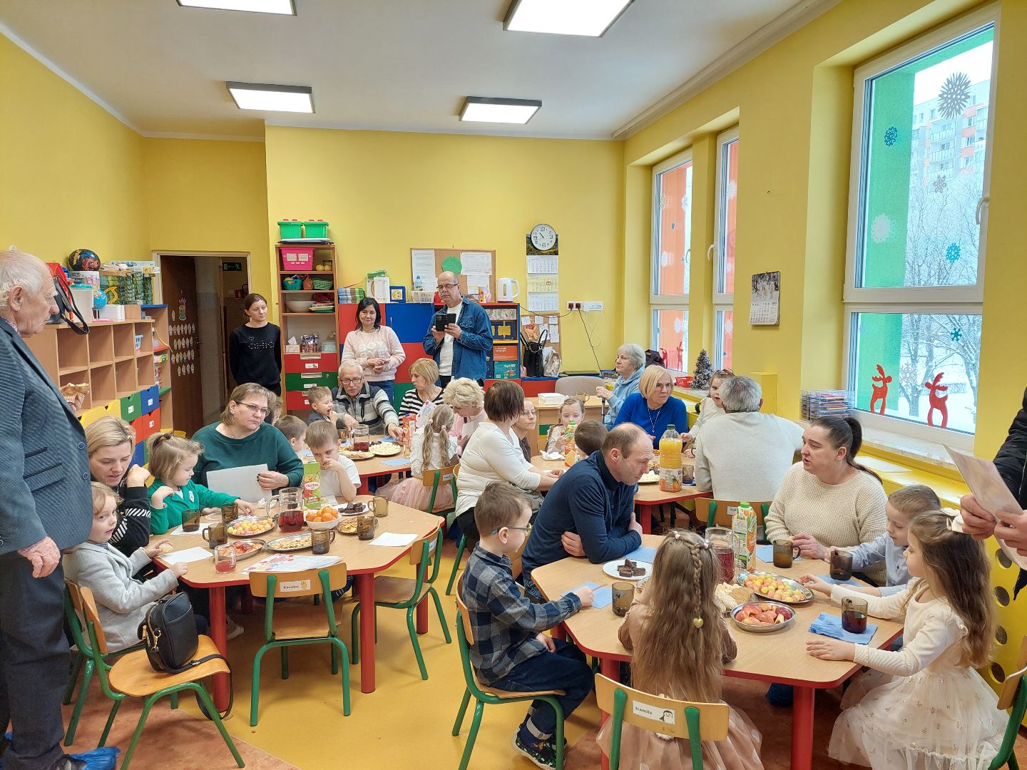 Po części artystycznej wnuki zaprosiły dziadków na słodki poczęstunek, podczas którego był czas na rozmowy i wspólne świętowanie.