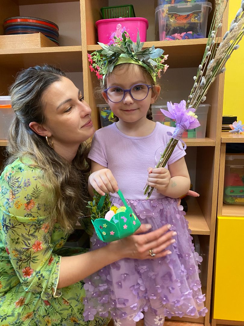 Wielkimi krokami zbliżające się święta dały okazję do wspólnego spotkania z rodzicami . Warsztaty wielkanocne w Puchatkach rozpoczęły się występem przygotowanym przez przedszkolaki. Dzieci zaprezentowały piosenki, tańce oraz krótkie układy z instrumentami. Widać było, że włożyły w to dużo pracy, a rodzice z dumą oglądali ich występ. Po części artystycznej zaprosiliśmy rodziców do zabaw integracyjnych. Dzieci razem z rodzicami brały udział w zabawach i tańcach. Było miło i wesoło a taka forma spotkania pozwoliła wszystkim poczuć się swobodnie i lepiej się poznać . Na zakończenie przyszedł czas na wspólną twórczą pracę . Dzieci wraz z rodzicami ozdabiały wielkanocne koszyczki oraz robiły palmy. Powstało wiele ciekawych i kolorowych prac. Każdy mógł wykazać się pomysłowością, a przy okazji porozmawiać i pobyć razem.