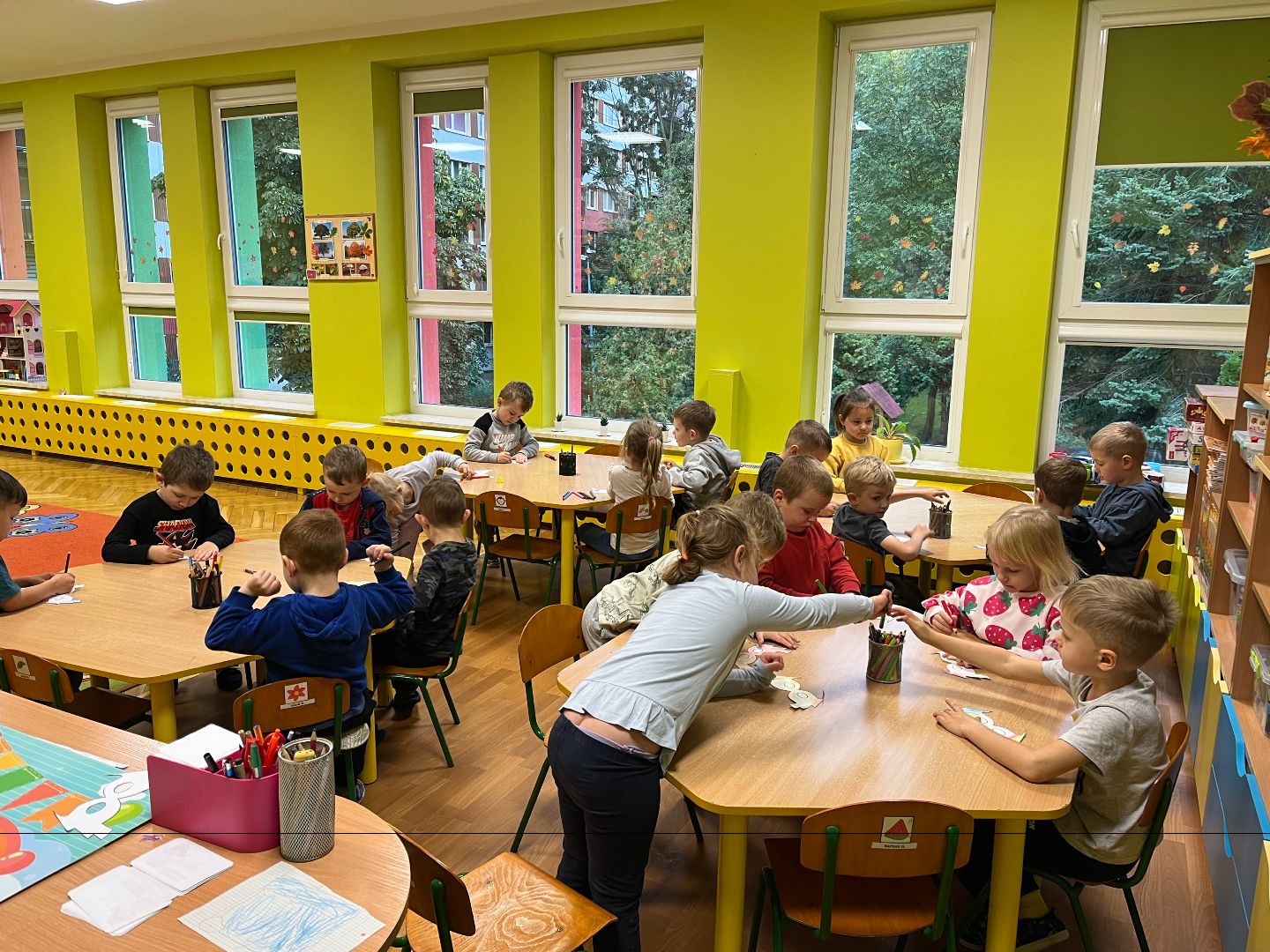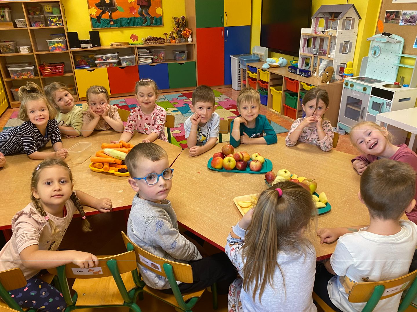 Miniony tydzień w grupie Króliczków był pełen wrażeń, rozmów i zabawy związanej z emocjami. Dzieci rozpoczęły swoją przygodę od obejrzenia bajki edukacyjnej „Pudełko emocji”, dzięki której poznały różne uczucia i sposoby ich wyrażania. Następnie poprzez zabawę z kołem emocji ćwiczyły rozpoznawanie mimiki twarzy i uczuć innych osób. Wspólnie rozmawialiśmy o tym, jak można okazywać radość, jak radzić sobie ze smutkiem czy co zrobić, kiedy ktoś jest zły. Króliczki wzięły także udział w zajęciach plastycznych – każde dziecko stworzyło własną pracę przedstawiającą emocje, a ich kolorowe dzieła wywołały wiele uśmiechów.