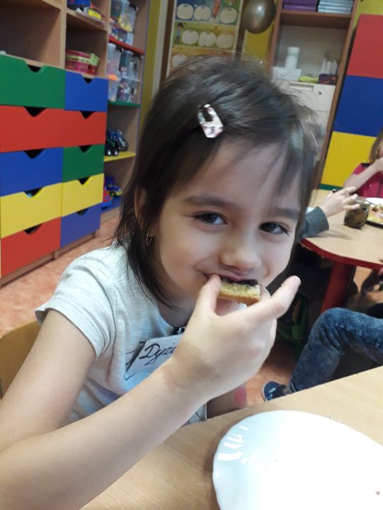 W oczekiwaniu na pizzę (która piekła się w rozgrzanym piekarniku przedszkolnej kuchni), każdy wykonał pracę plastyczną ,,Mój trójkącik pizzy”. Następnie dzieci z wielkim apetytem próbowały własnoręcznie przygotowanej pizzy. Cały dzień upłynął nam w miłej i radosnej atmosferze.