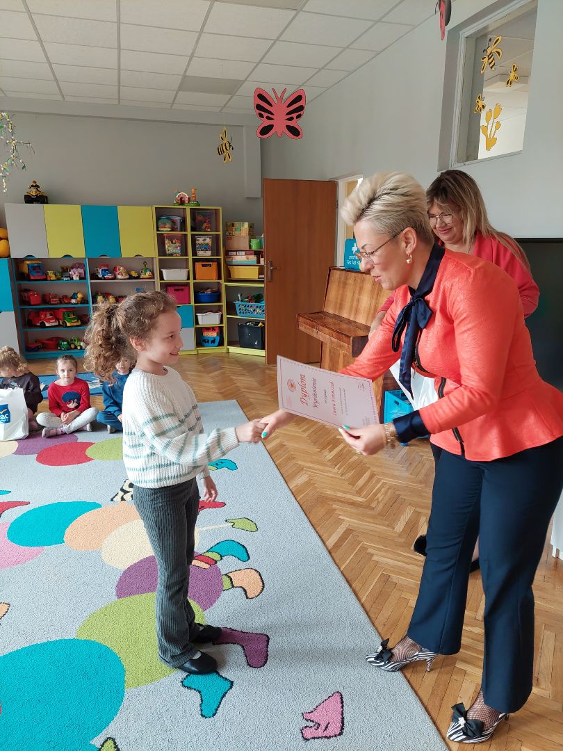 W naszej grupie odbyły się wyjątkowe zajęcia sportowe, które poprowadziła mama Tosi! Zajęcia rozpoczęły się od przeczytania wiersza Juliana Tuwima "Raz, dwa, trzy", który wprowadził dzieci w radosny, aktywny nastrój. Najpierw dzieci wzięły udział w rozgrzewce, która przygotowała je do kolejnych aktywności, a potem z entuzjazmem pokonały tor przeszkód, ćwicząc zręczność i koordynację. Dzieci miały także okazję nauczyć się, jak ważne jest dopingowanie innych – wspólne kibicowanie sprawiło, że każdy czuł się doceniony i zmotywowany do działania. Zajęcia pełne radości, ruchu i wzajemnego wsparcia na pewno zostaną w pamięci naszych małych sportowców!