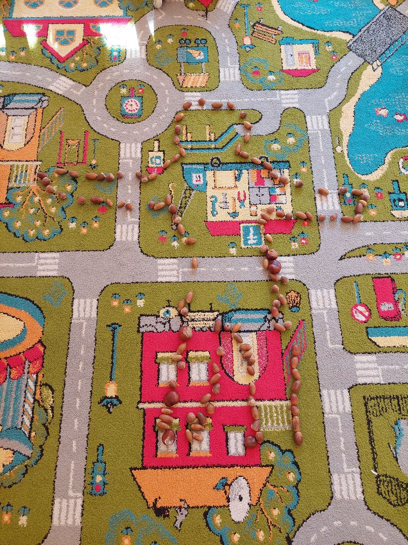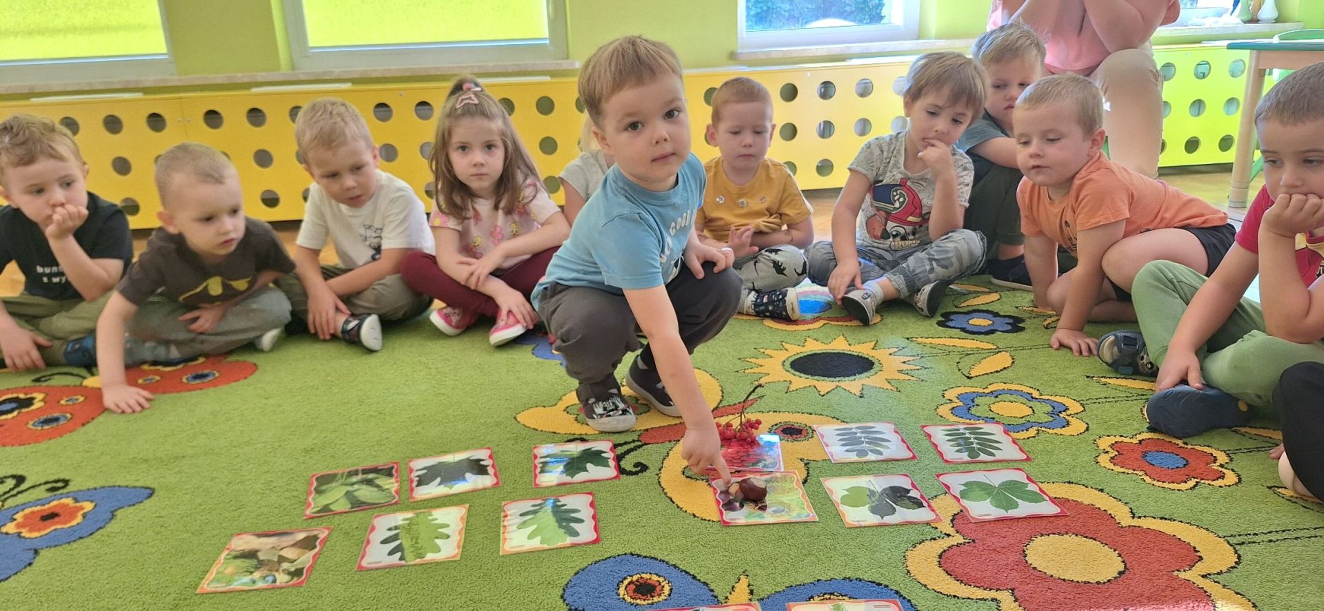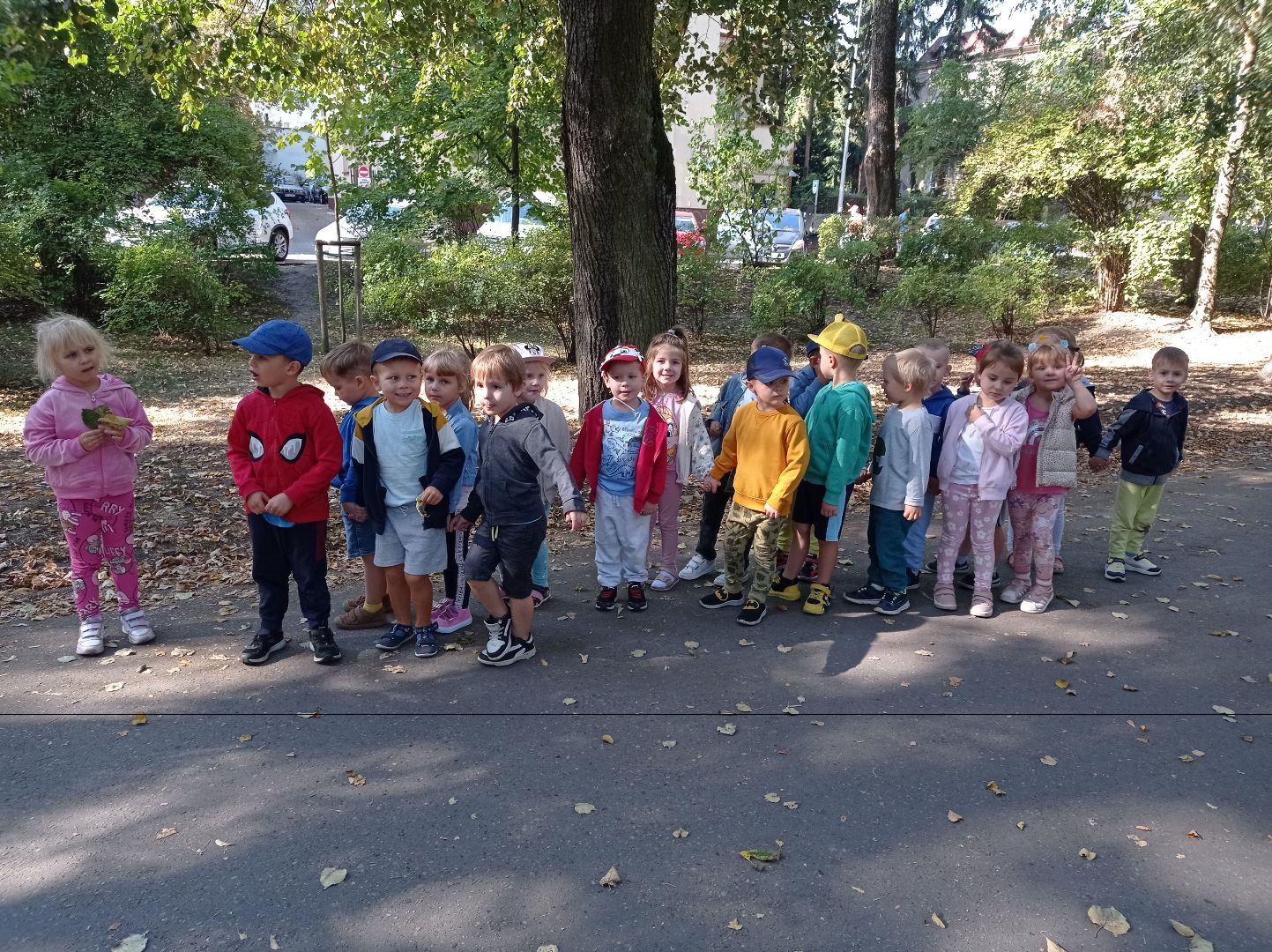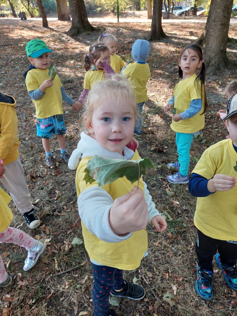 Jesień to kolorowa i wyjątkowa pora roku stwarzająca mnóstwo okazji do poznawania otaczającego świata. Puchatki podczas zajęć uczyły się rozpoznawać i nazywać najbardziej charakterystyczne drzewa, które właśnie jesienią dają najwięcej swoich darów: kasztanowce, klony, dęby, jarzębiny. Następnie korzystając z pięknej pogody aktywnie uczestniczyły w odkrywaniu tych skarbów wokół przedszkola. Klony, dęby, kasztanowce oraz drzewa iglaste oferowały przedszkolakom kasztany, żołędzie, noski, szyszki i kolorowe liście. Wielką radość sprawiało dzieciom odnajdywanie drzew i liści, których nazwy poznały, a klonowe noski z dumą nosiły na podwórku.