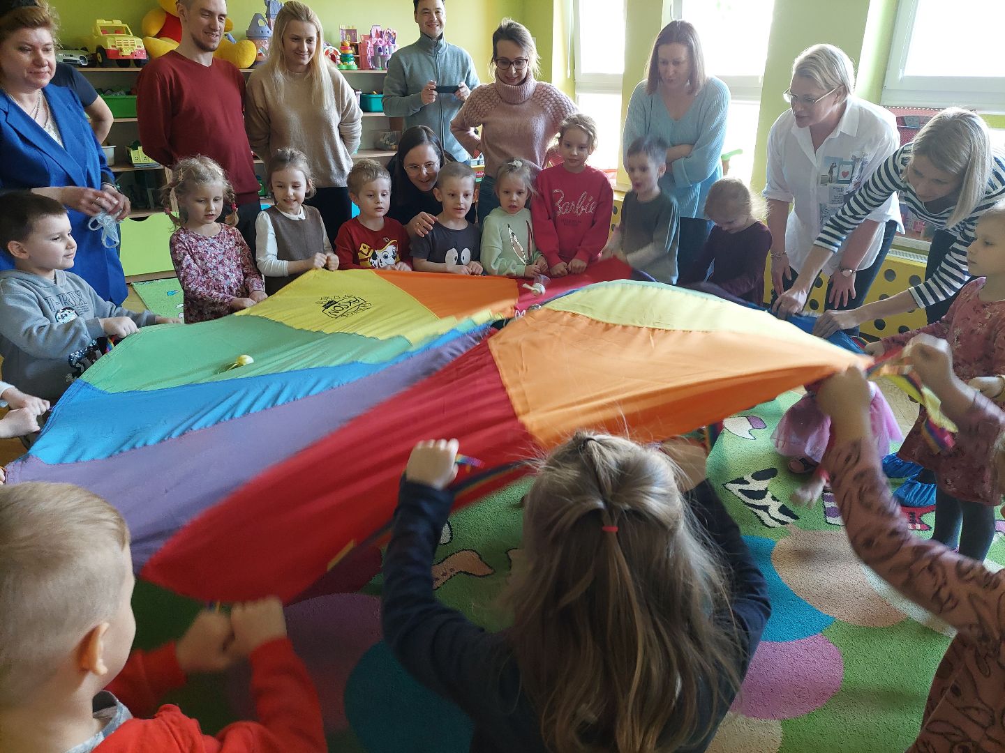 Dnia 20 marca 2024 w grupie Puchatki odbyły się zajęcia otwarte dla rodziców. Dzieci zaprezentowały piosenkę, a następnie zaprosiły rodziców do zabaw ruchowych przy wykorzystaniu chusty animacyjnej i gumy sensorycznej. Kolejną atrakcją było wspólne przygotowanie dekoracji, które na Wielkanoc ozdobią domy naszych podopiecznych.