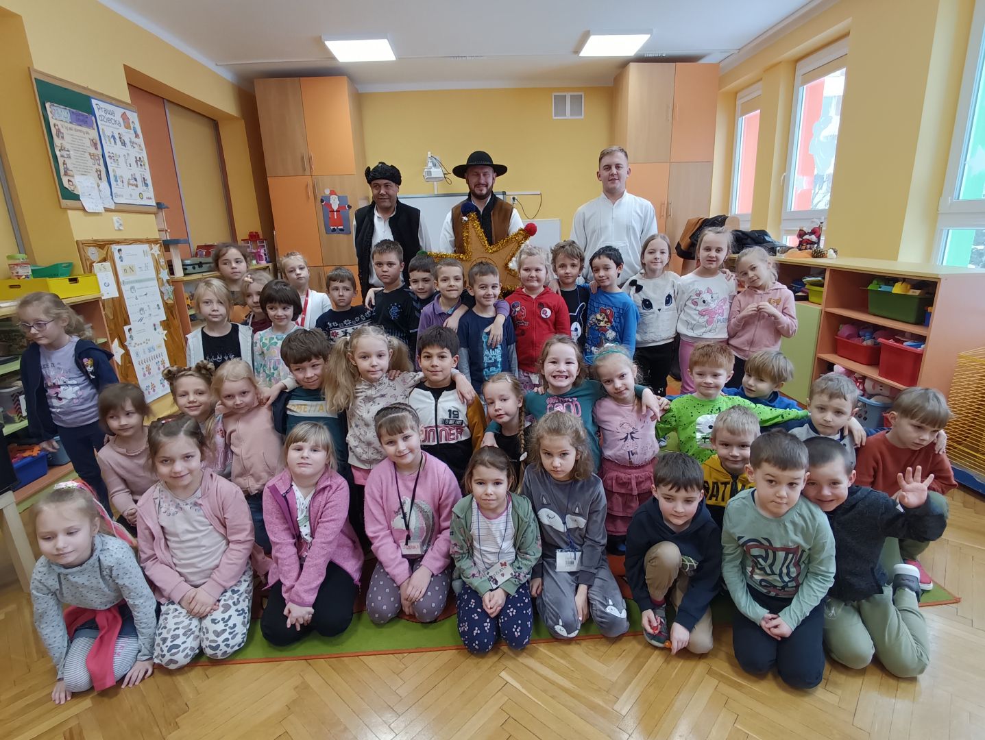 Dnia 18.01.2024 dzieci z grupy „Mądre Sówki” uczestniczyły w lekcji bibliotecznej w Filii nr 15 Książnicy Podlaskiej na ulicy M. Skłodowskiej Curie. Nasze 6-cio latki zdobywały i poszerzały wiadomości na temat obecnej pory roku - Zimy. Oglądały ciekawą prezentację, wykonały pracę plastyczną, słuchały czytanej przez panią bibliotekarkę książeczki o ptakach i zwierzętach zimą. Ciekawe i twórcze zajęcia zakończyły się miłą niespodzianką - prezentem dla każdego (długopis, smycz, balon). Zadowolone przedszkolaki chętnie wrócą tu w lutym. Niektóre dzieci regularnie odwiedzają bibliotekę z rodzicami, którzy wypożyczają książki sobie i swoim pociechom.