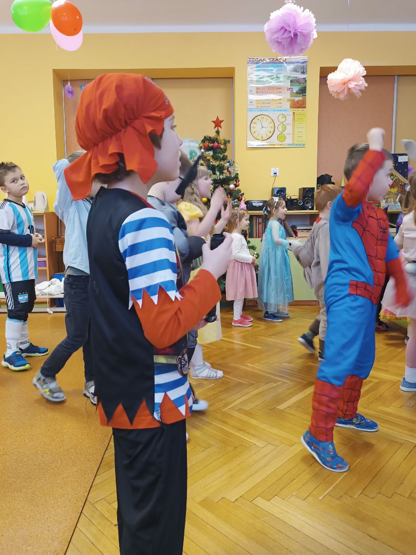 Karnawał to czas balów i tanecznych szaleństw, którym towarzyszy muzyka i zabawa. Bal karnawałowy dla przedszkolaków to dzień niezwykły, często wyczekiwany przez wiele tygodni. Dla dzieci to dzień szczególny, tego dnia miały okazję przebrać się za swoje ulubione postacie z bajek i nie tylko. Jest atrakcją bardzo lubianą przez dzieci, dostarczającą im wielu przeżyć i radości.Na balu pojawiły się więc: wróżki, księżniczki, biedronki, Psi Patrol, strażak, Spider – meni i wiele innych postaci. Dzieci świetnie bawiły się w rytm muzyki porywającej do tańca oraz brały udział w najróżniejszych konkursach. Bajkowa atmosfera na długo pozostanie w pamięci naszych pociech.