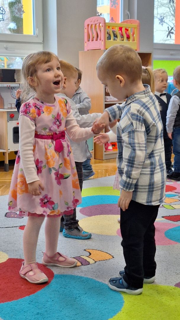 W najchłodniejszej porze roku w grupie Maleństw odbyło się najcieplejsze święto – Dzień Babci i Dziadka. Z tej okazji dzieci zaprezentowały krótki program artystyczny, którym poprzez słowa piosenek i wierszy wyraziły swą miłość do najukochańszych Babć i Dziadków. Występ wywołał wielkie wzruszenie i został nagrodzony dużymi brawami. Dzieci podarowały swoim Gościom własnoręcznie wykonane upominki: krawaty dla dziadka i kwiaty dla babci. Zaprosiły też Dziadków do wspólnego walczyka. To było bardzo pełne uśmiechu, radości i wzruszeń.