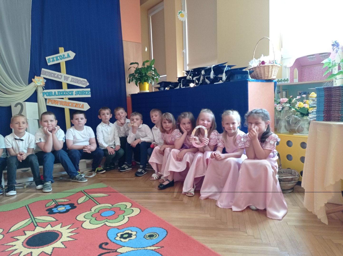 Dnia 20 czerwca przedszkolaki kończące edukację przedszkolną pożegnały uroczyście nasze przedszkole. W pięknych strojach galowych zatańczyły uroczyście taniec Polonez. Pokazały to, czego nauczyły się podczas pobytu w przedszkolu- układy taneczne, rock and roll, instrumentacje znanego utworu muzycznego oraz inscenizację. Na koniec pani dyrektor uroczyście wręczyła naszym absolwentom pamiątkowe dyplomy oraz prezenty.