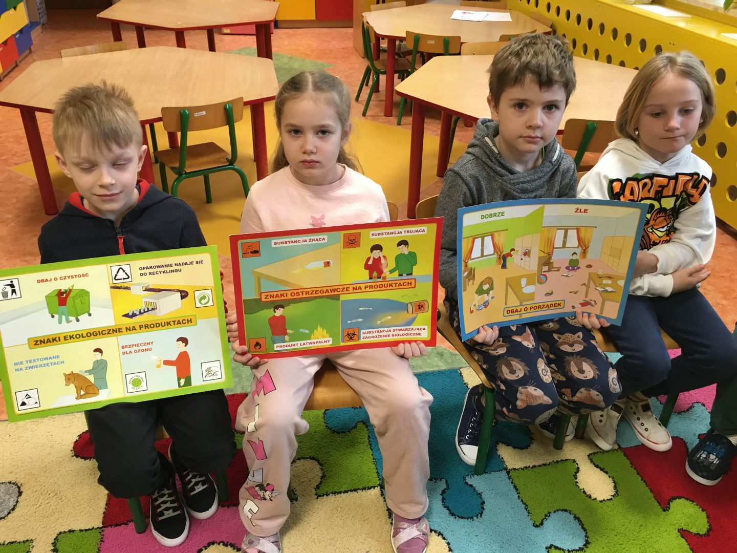 Na zajęciach rozmawialiśmy o tym, w jaki sposób należy dbać o planetę. Poznaliśmy znaczenie słów ekologia i ekologiczny. Utrwaliliśmy informacje o sposobach segregowania śmieci w domu oraz w sortowni. Dzieci zrozumiały że jeśli nie dbamy o naszą planetę, jej czas się kurczy. Aby była w dobrej kondycji, a dzięki niej również wszyscy ludzie na świecie, musimy pamiętać o ekologicznych nawykach