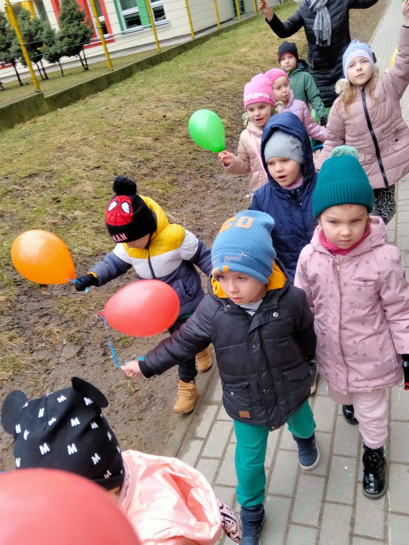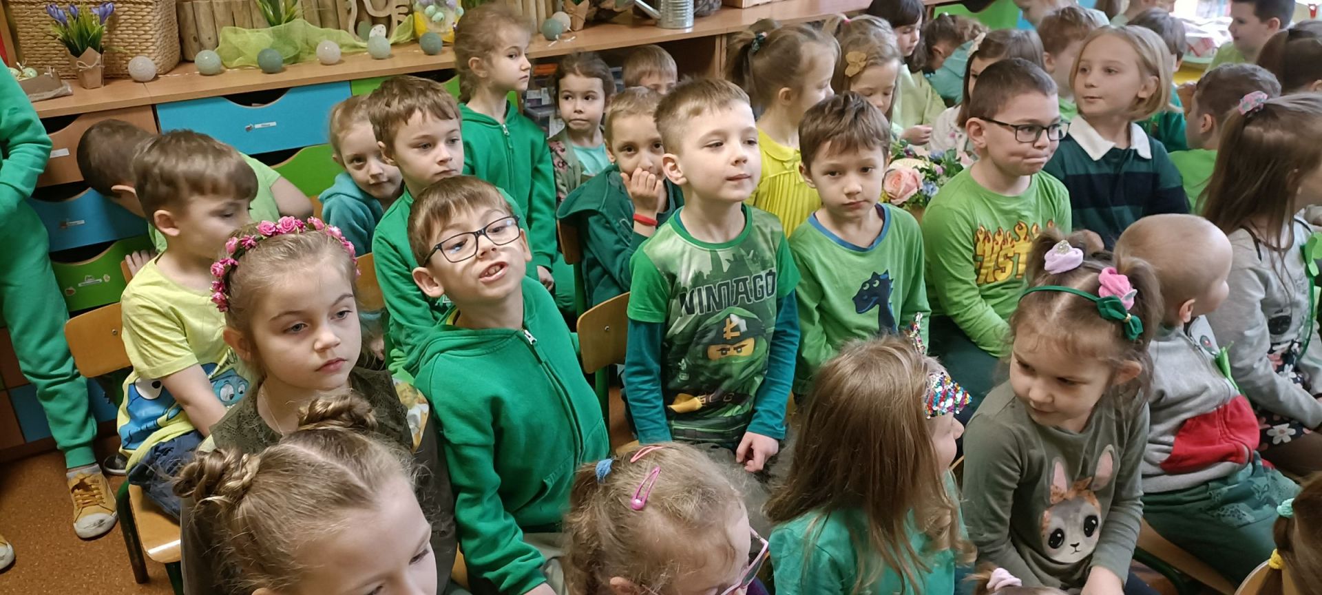 21 marca pożegnaliśmy zimę i przywitaliśmy wiosnę. Tego dnia wszyscy ubrani byli w kolorze zielonym. Obejrzeliśmy przedstawienie przygotowane przez dzieci z kabareciku ,, Truskawka,, , wywieźliśmy Marzannę zimową Pannę, śpiewaliśmy piosenki o wiośnie i rozwiązywaliśmy zagadki. W końcu przyszła do nas Wiosna.